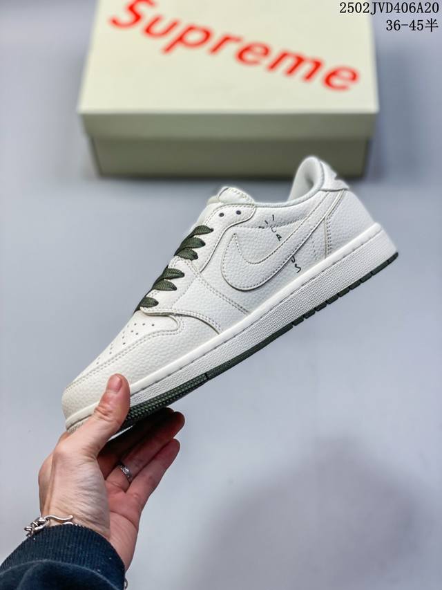 海外爆款限量发售!公司级 Travis Scott X Fragment Design X Jordan Air Jordan 1 Low Og Sp “Supreme北面联名——米白橄榄绿” 多方联名合作融合了Travis Scott 独特的音乐风格,藤原浩个性的设计风格以及Jordan品牌的经典元素 使其成为一双具有独特身份和价值的鞋子 清新而立体的外观加上联名标识更突出了其独特身份 这种配色方案显示出活力和时尚感 在视觉上引人注目 鞋身的质感和细腻的细节处理使其显得高端而格调十足 这款“
