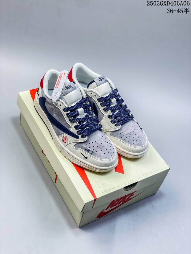 海外爆款限量发售!Travis Scott X Fragment Design X Jordan Air Jordan 1 Low Og Sp “斯图西联名蛇年限定——双拼红尾” 多方联名合作融合了Travi翻毛蓝勾S Scott 独特的音乐风格,藤原浩个性的设计风格以及Jordan品牌的经典元素 使其成为一双具有独特身份和价值的鞋子 清新而立体的外观加上联名标识更突出了其独特身份 这种配色方案显示出活力和时尚感 在视觉上引人注目 鞋身的质感和细腻的细节处理使其显得高端而格调十足 这款“倒钩”