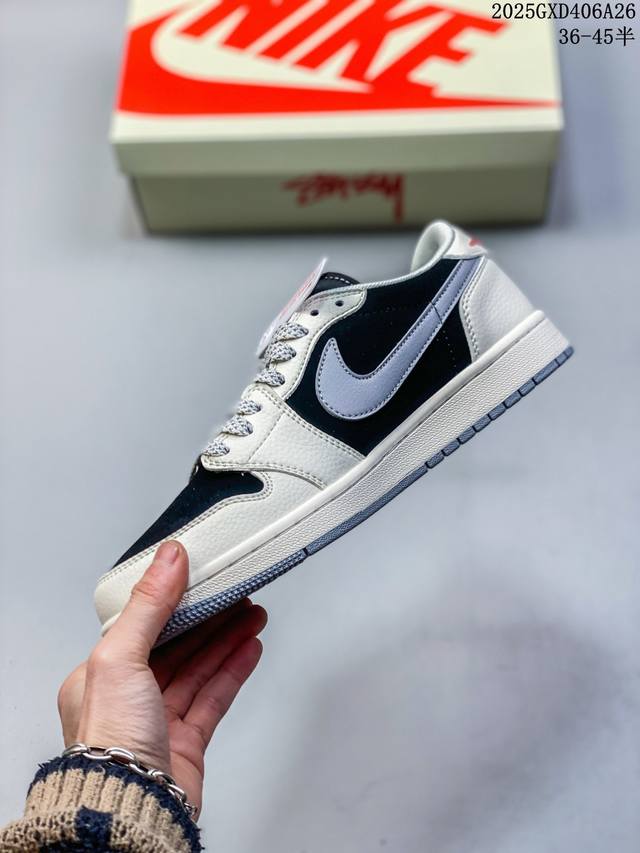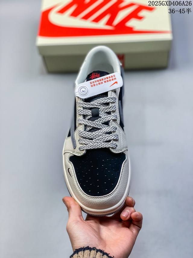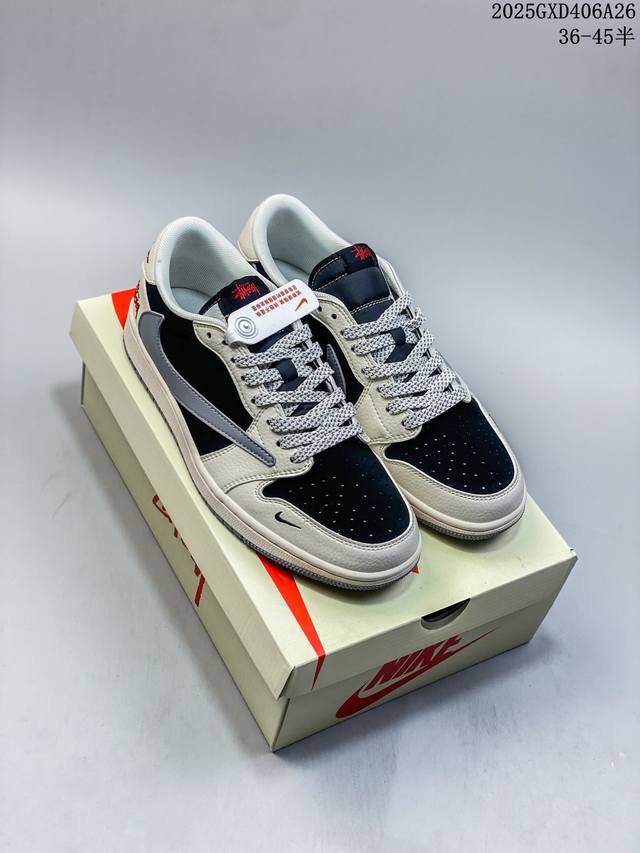 海外爆款限量发售!Travis Scott X Fragment Design X Jordan Air Jordan 1 Low Og Sp “斯图西联名——米灰黑拼接” 多方联名合作融合了Travi翻毛蓝勾S Scott 独特的音乐风格,藤原浩个性的设计风格以及Jordan品牌的经典元素 使其成为一双具有独特身份和价值的鞋子 清新而立体的外观加上联名标识更突出了其独特身份 这种配色方案显示出活力和时尚感 在视觉上引人注目 鞋身的质感和细腻的细节处理使其显得高端而格调十足 这款“倒钩”联名是