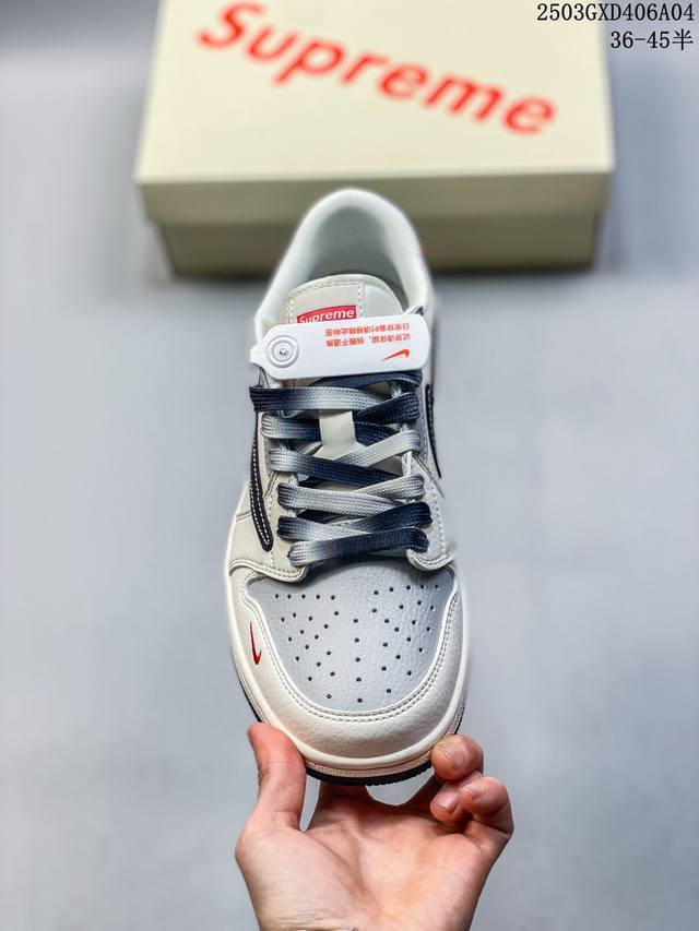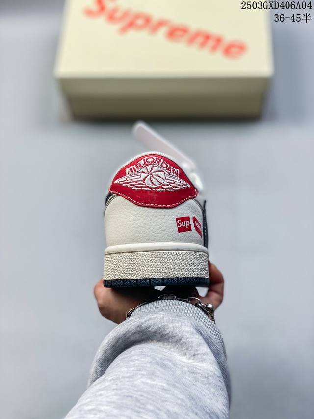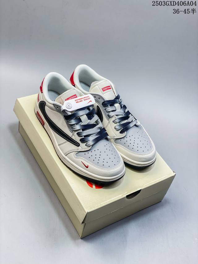 海外爆款限量发售!Travis Scott X Fragment Design X Jordan Air Jordan 1 Low Og Sp “Supreme联名——米黑金属红标” 多方联名合作融合了Travi翻毛蓝勾S Scott 独特的音乐风格,藤原浩个性的设计风格以及Jordan品牌的经典元素 使其成为一双具有独特身份和价值的鞋子 清新而立体的外观加上联名标识更突出了其独特身份 这种配色方案显示出活力和时尚感 在视觉上引人注目 鞋身的质感和细腻的细节处理使其显得高端而格调十足 这款“倒