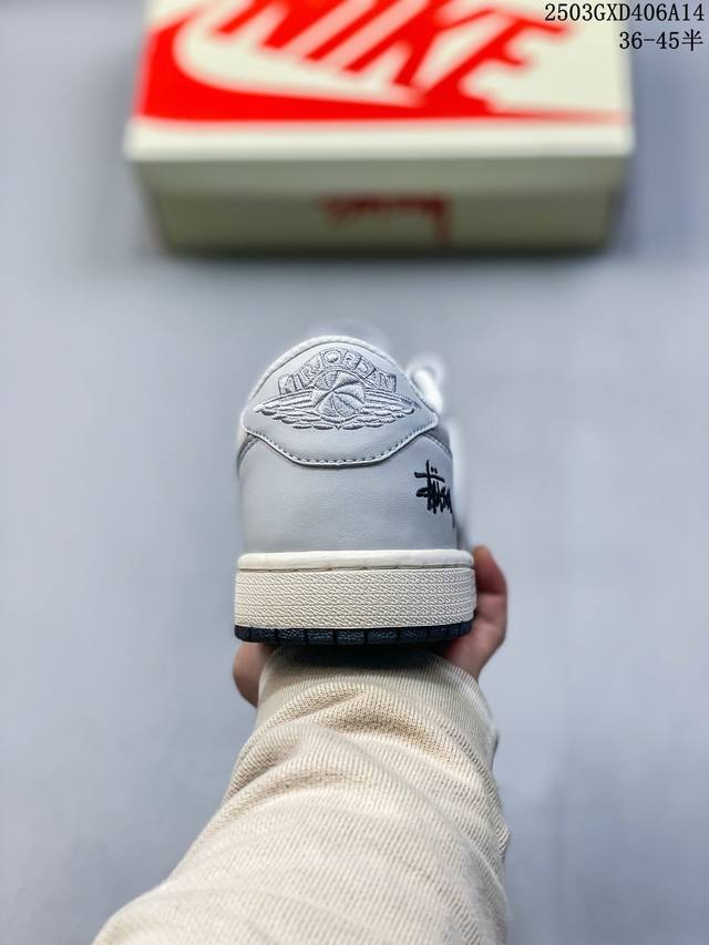 travis Scott X Fragment Design X Jordan Air Jordan 1 Low Og Sp “斯图西联名——夏蝉灰” 多方联名合作融合了Travis Scott 独特的音乐风格,藤原浩个性的设计风格以及Jordan品牌的经典元素 使其成为一双具有独特身份和价值的鞋子 清新而立体的外观加上联名标识更突出了其独特身份 这种配色方案显示出活力和时尚感 在视觉上引人注目 鞋身的质感和细腻的细节处理使其显得高端而格调十足 这款“倒钩”联名是设计与创意完美结合 融合多方的个性