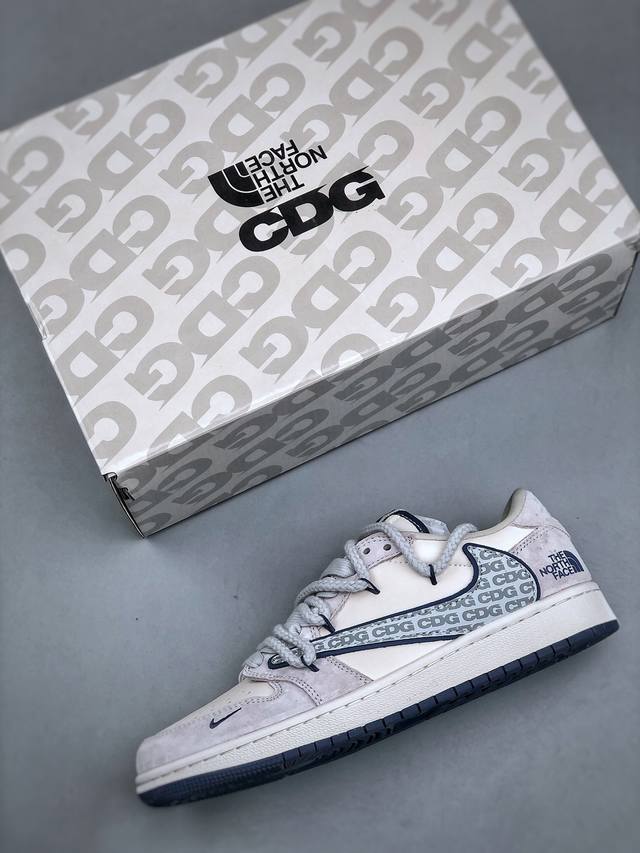 450支持放店 Travis Scott X Fragment Design X Jordan Air Jordan 1 Low Og Sp 乔1北面联名 Cdg米蓝抽绳 低帮文化休闲板鞋 Xx3318-515 #多方联名合作融合了Travis Scott 独特的音乐风格,藤原浩个性的设计风格以及Jordan品牌的经典元素 使其成为一双具有独特身份和价值的鞋子 清新而立体的外观加上联名标识更突出了其独特身份 这种配色方案显示出活力和时尚感 在视觉上引人注目 鞋身的质感和细腻的细节处理使其显得高端而格调十足