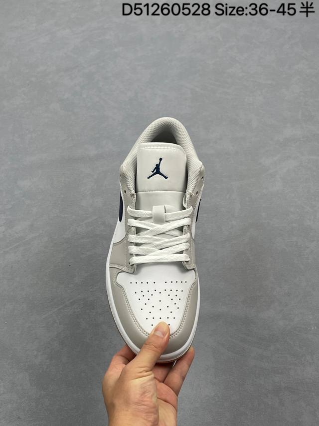 air Jordan 1 Low 低帮 灰白蓝 Aj1 乔丹1代 Aj1 乔1 低邦 白灰蓝 男女同款 乔丹篮球鞋系列 鞋身整体以米白色皮革打造 搭配灰色皮革框架覆盖层 清爽又不失个性 鞋身两侧Swoossh Logo采用蓝色点缀 鞋舌上Jumpman Logo辅以蓝色刺绣呈现 整体配色高级感拉满 后跟Wings Logos采用蓝色缝线妆点 最后以白色中底搭生胶色橡胶外底完善整体设计收尾