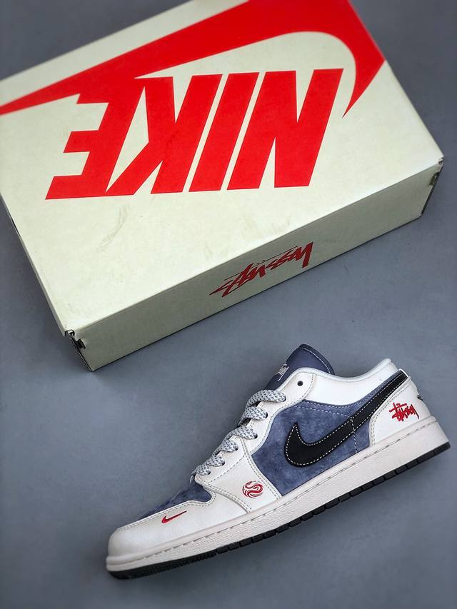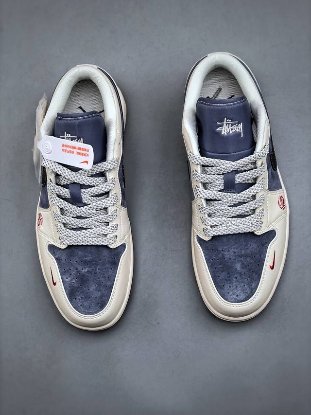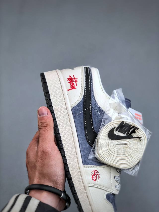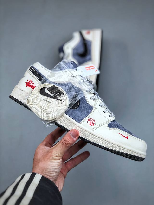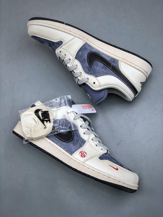 / Air Jordan 1 Low Aj1 乔1 斯图西联名蛇年限定 米白深灰勾 高端定制 低帮复古篮球鞋 #定制鞋盒 大厂纯原品质出货 超高清洁度 皮料切割干净