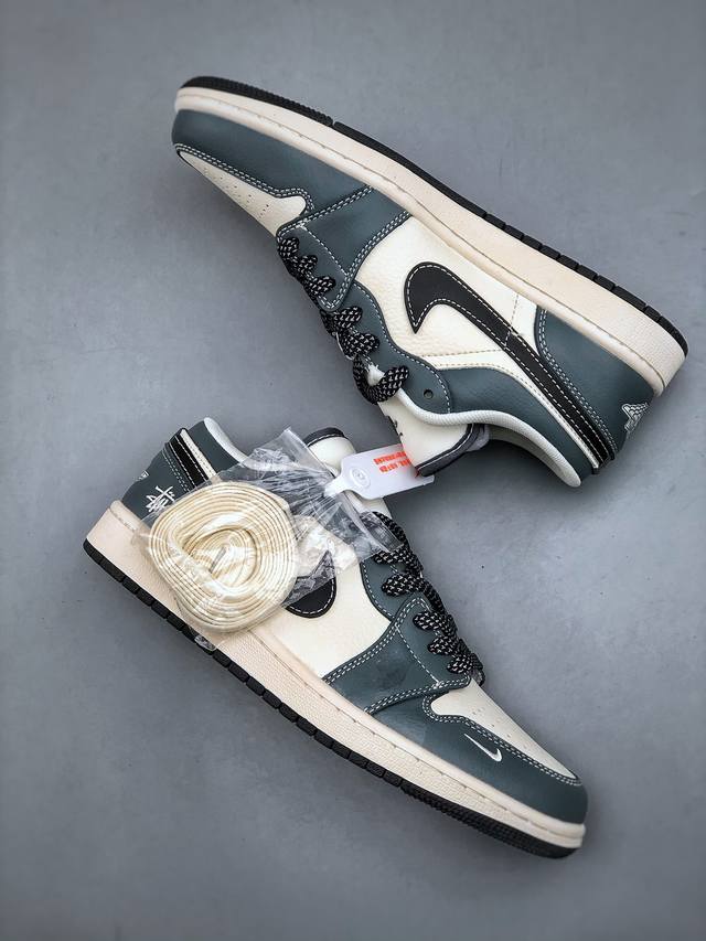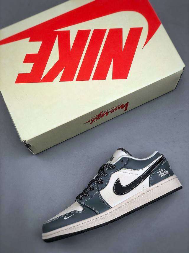 / Air Jordan 1 Low Aj1 乔1 斯图西联名 蓝灰色 高端定制 低帮复古篮球鞋 Xx3 -506 #定制鞋盒 大厂纯原品质出货 超高清洁度 皮料切
