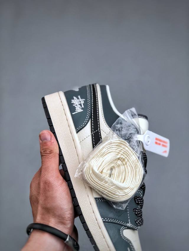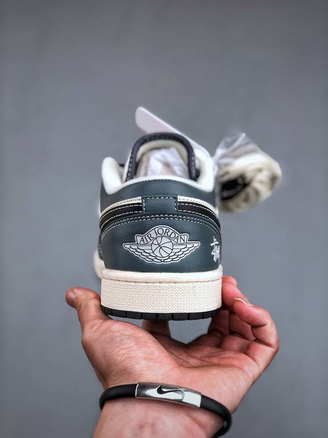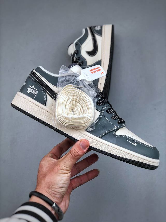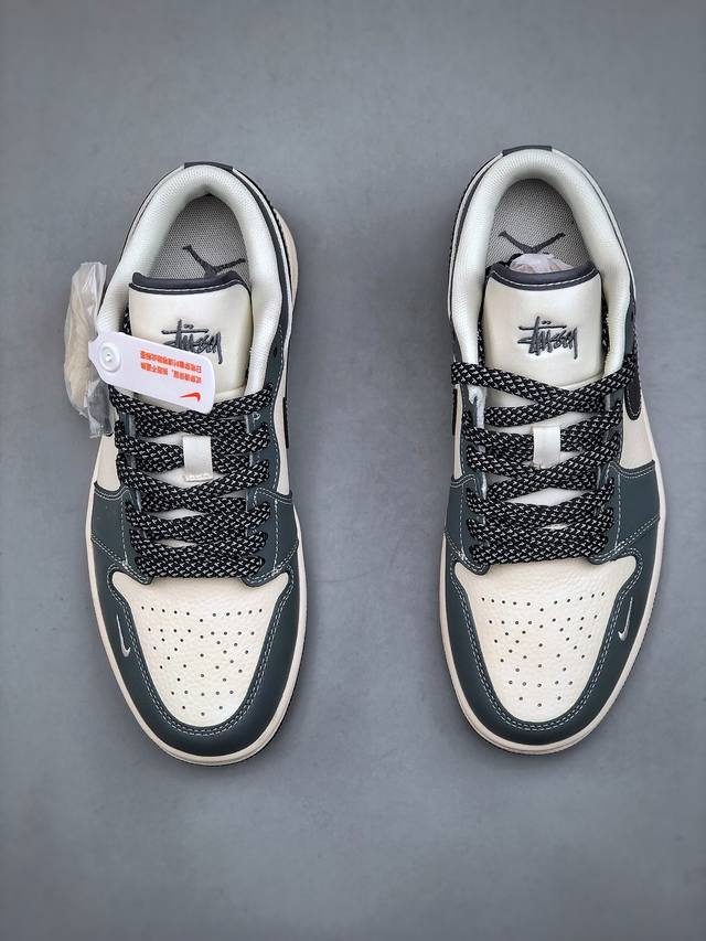 Air Jordan 1 Low Aj1 乔1 斯图西联名 蓝灰色 高端定制 低帮复古篮球鞋 Xx3 -506 #定制鞋盒 大厂纯原品质出货 超高清洁度 皮料切