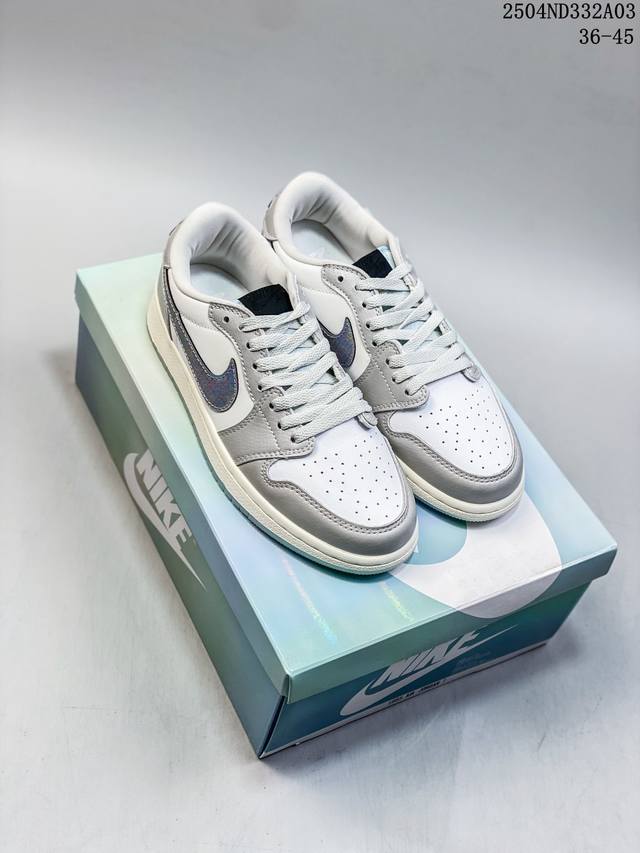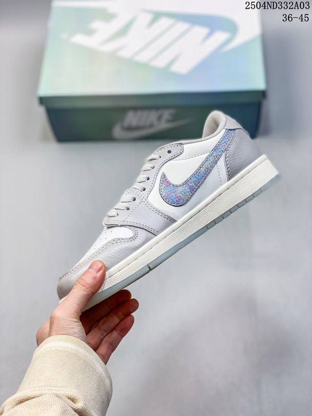 Air Jordan 1 Low Og 蛇年 Cny 低帮 蛇年限定 白灰黑 Aj1 乔丹1代 Aj1 乔1 低邦 白黑 男女同款 乔丹篮球鞋系列 鞋身整体以白灰为主色调,灰色皮面看上去有一点金属光泽感,米白色中底配上淡蓝色的水晶大底,两侧黑色蛇皮纹Swoosxh Logo覆盖了“抗撕拉尼龙面料”,丰富的纹理设计模仿出鳞片的光泽感,每双鞋均配有仿蛇纹吊牌,后跟嵌入水晶炫彩Wings Logo,最值得一提的还是鞋舌和Swoossh Logo的外侧,半透明的“尼龙面料”撕扯开很像蛇蜕皮的即视感,这也刚好呼应了