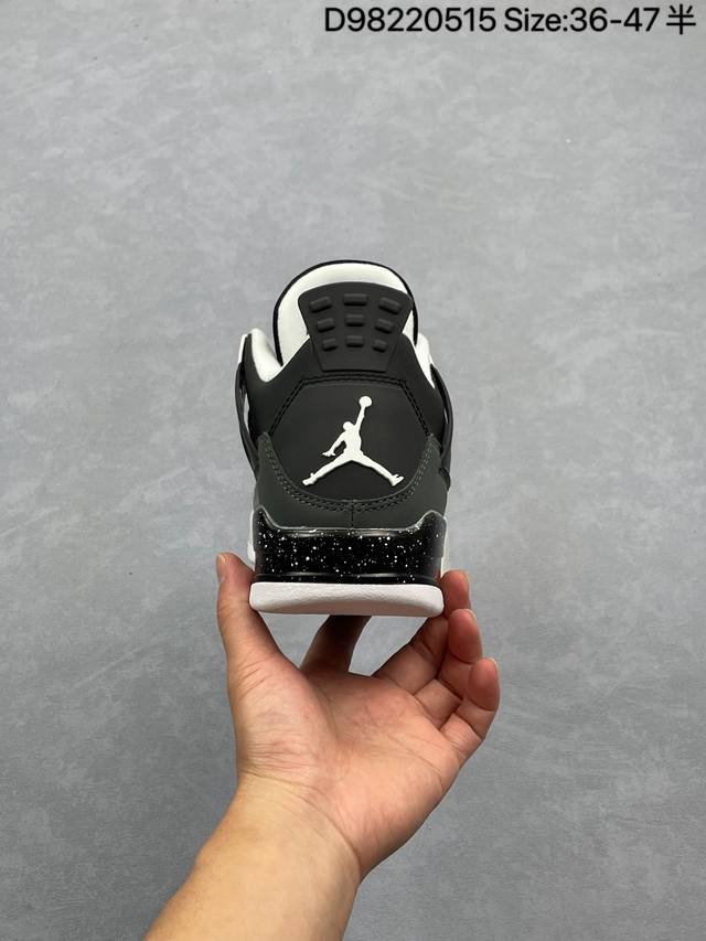 Air Jordan 4 Retro Pear Pack 复刻 恐惧限定 黑白 Aj4 乔丹4代 Aj4 乔4 黑白 奥利奥 乔丹篮球鞋系列 鞋面以皮质和尼龙网格相结合,降低重量的同时提升舒适度,鞋带孔和后跟鞋提以篮网为造型灵感将篮球运动巧妙融入到鞋款的设计之中,使鞋身整体富有流动性、节奏感和优雅气质。鞋身采用了奥利奥题材的配色,深色鞋面搭配浅色大底,中底外沿采用了泼墨风格,颇受球鞋迷朋友青睐。鞋舌白色绣标上以黑色刺绣点缀Jumpman Logo及Flight字样,后跟及外底Jjumpman Logo则以