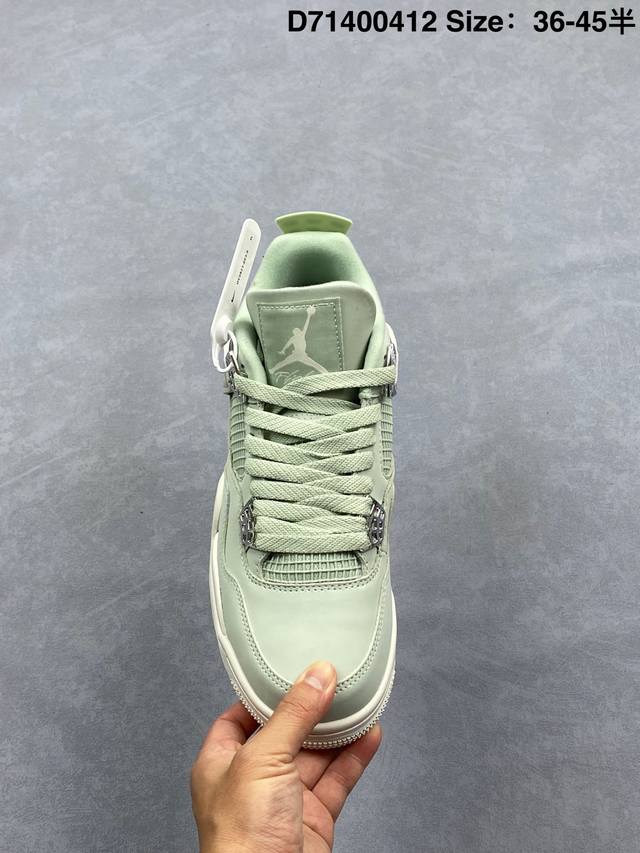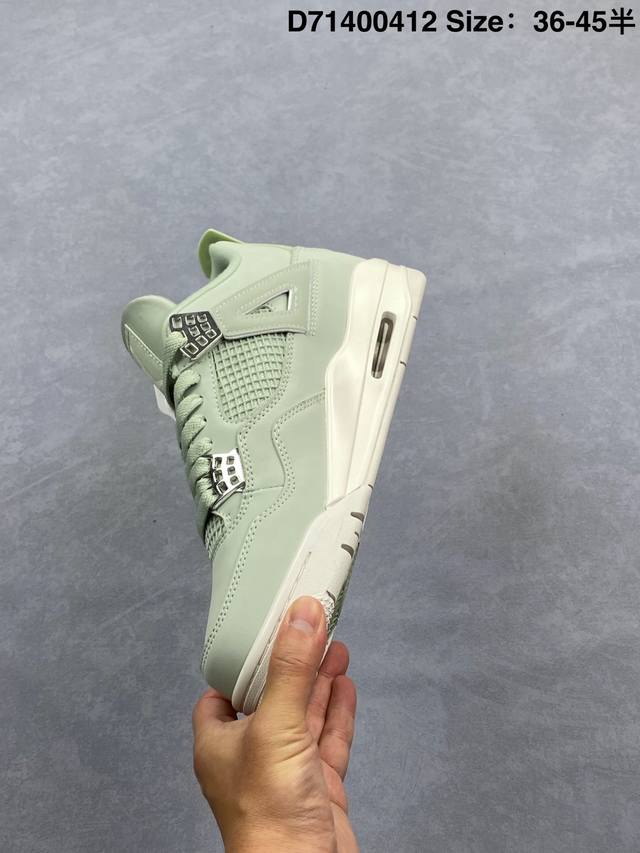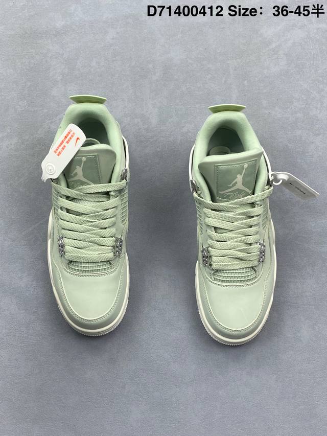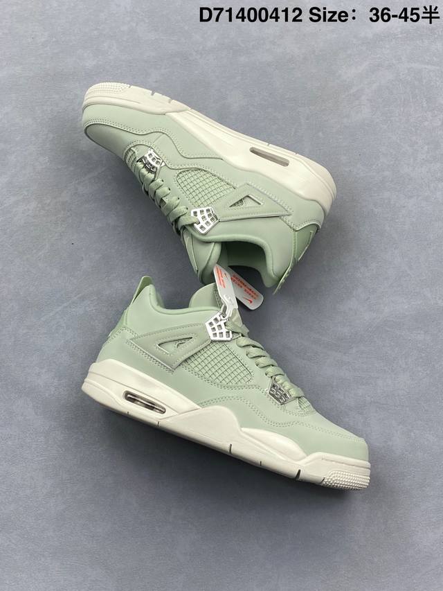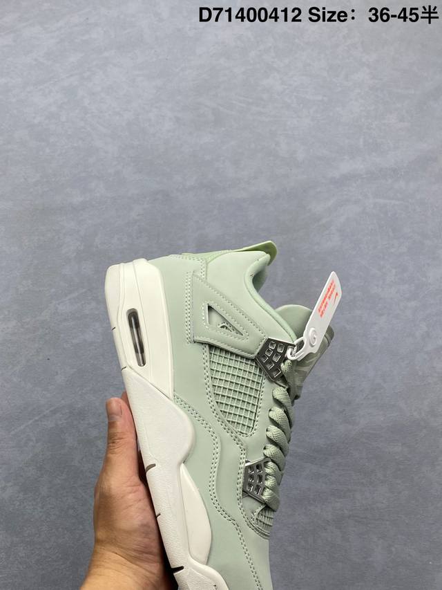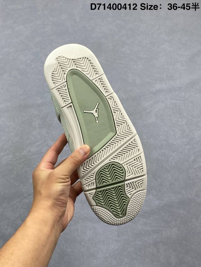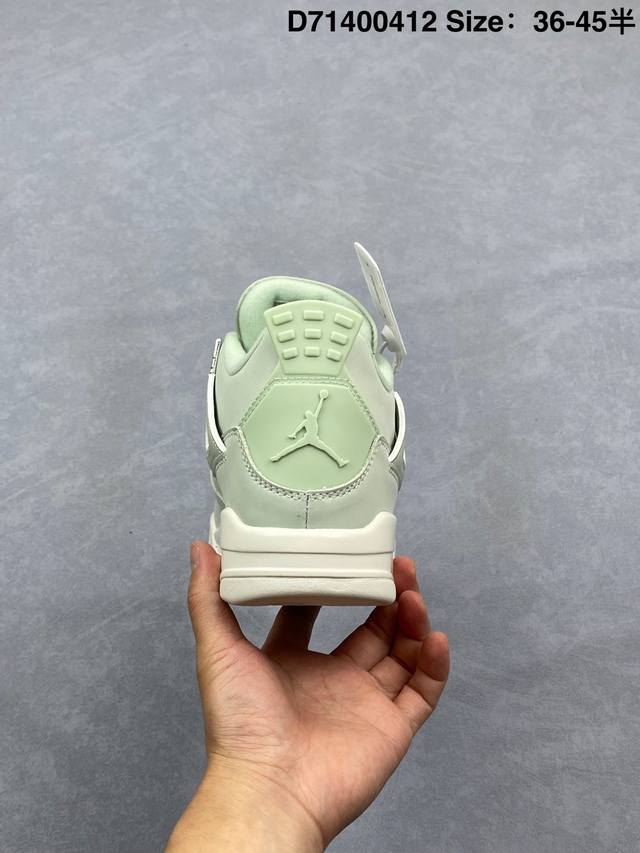 鞋身整体以绿色皮革为主色调,辅以银色点缀,搭配绿色的鞋带,让鞋子看起来更有整体感。鞋侧身绿色格网透出绿色内层,鞋舌顶端绿色的标签,以白色Jumpman Logo以及白色Flight刺绣字样,彰显球鞋身份。鞋带孔部位的Tpu装饰采用银色呈现,更具细节感。鞋帮部分和后跟位置的提环使用绿色Tpu材质,给鞋身带来更多色彩层次感;后跟Jumpman Logo及外底迷你Jumpxman Logo以绿色点缀,中底使用米白色妆点,呼应鞋身设计,最后以搭载有开