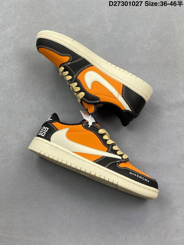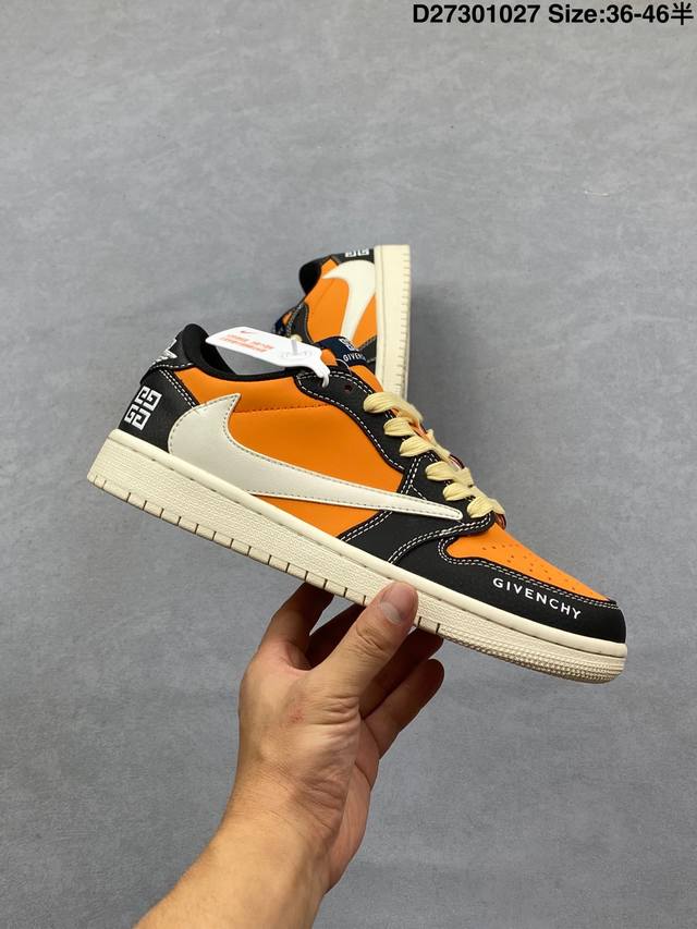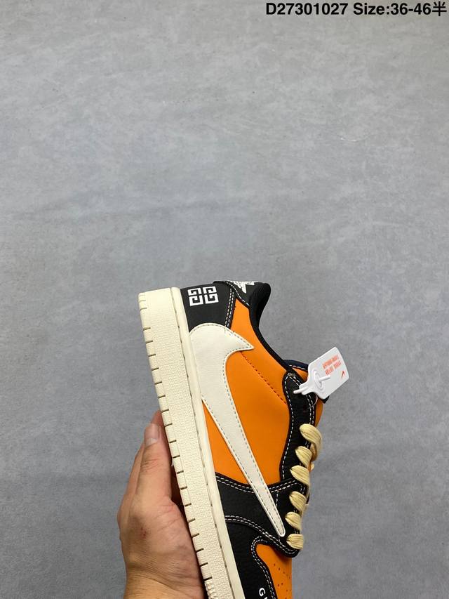公司级Fragment X Travis Scott X Nba air Jordan 1 Low 三方联名倒钩 全新的三方联名低帮倒钩鞋面延续了黑脚趾设计 整