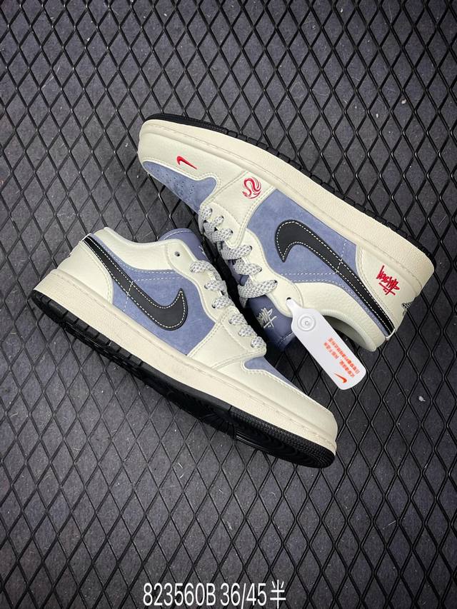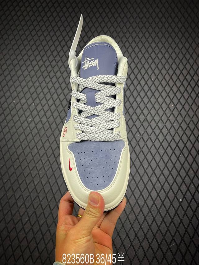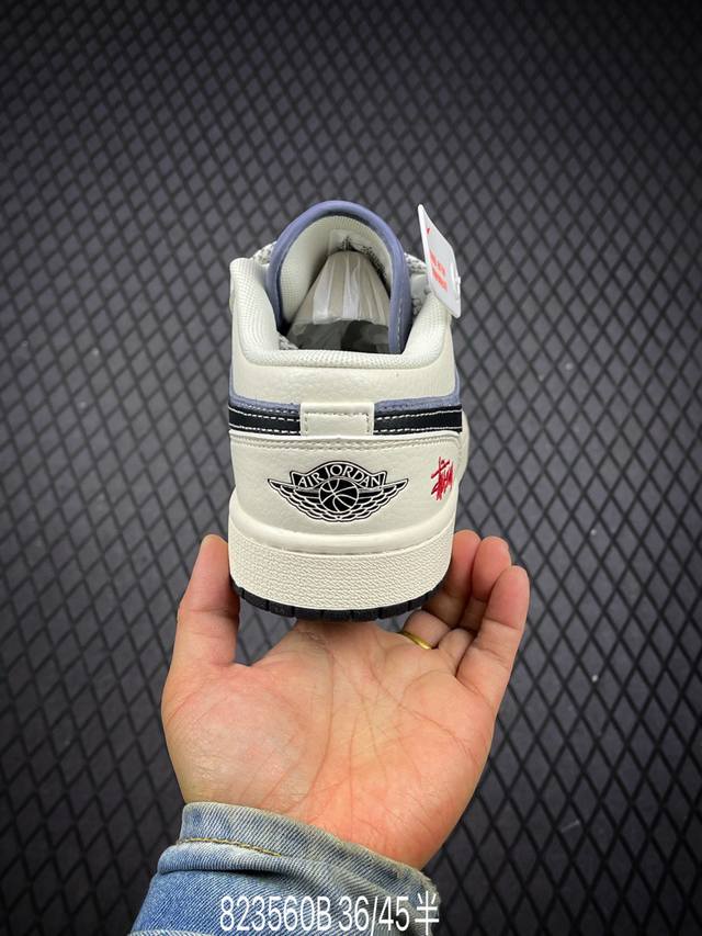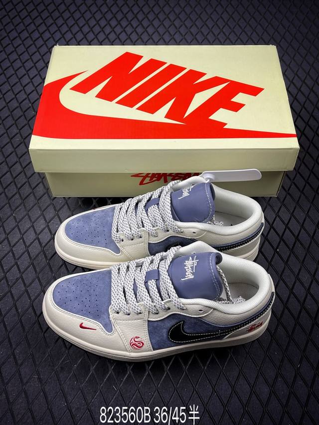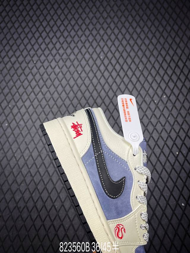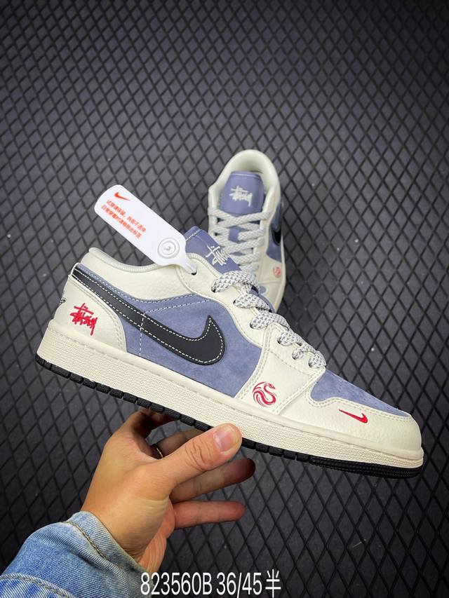 Air Jordan 1 Low Aj1 乔1 斯图西联名蛇年限定 米白深灰勾 高端定制 低帮复古篮球鞋