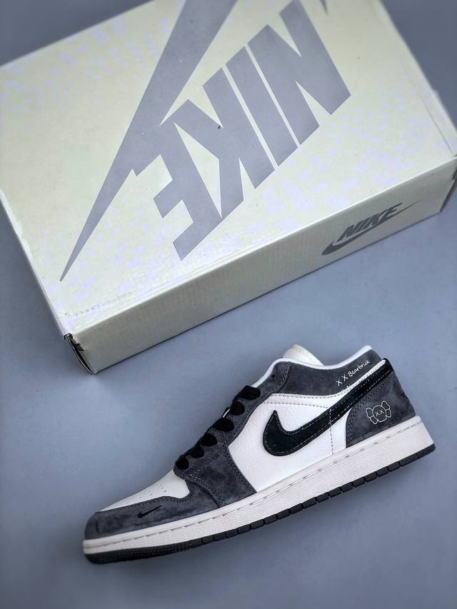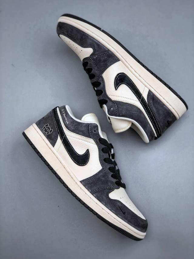 C版 Air Jordan 1 Retro Low X Bearbrick 暴力熊米白黑深空灰官方同步新色 原装级产物拒绝公底 立体鞋型 细节完美 高清洁度 购