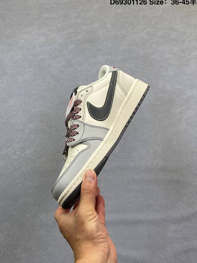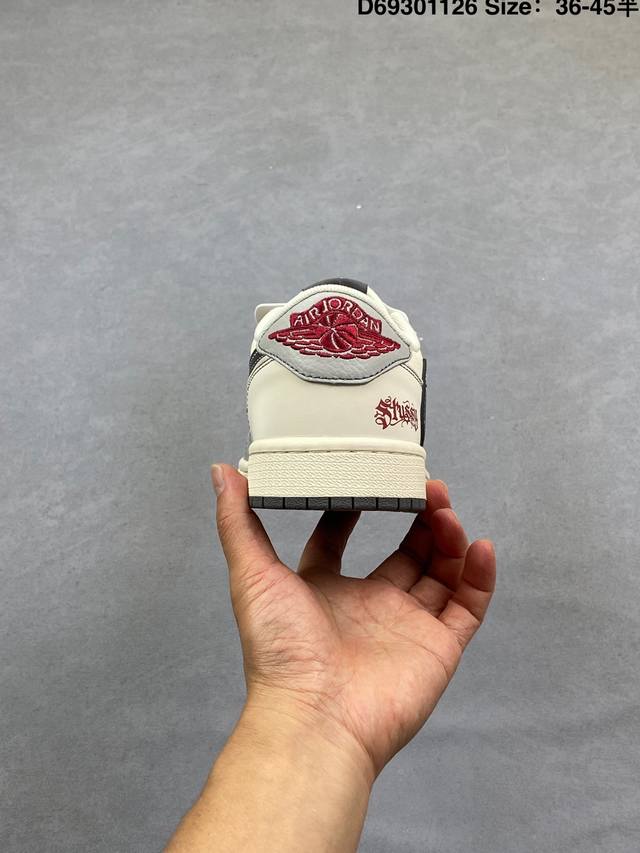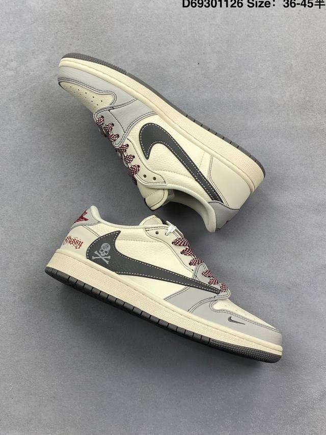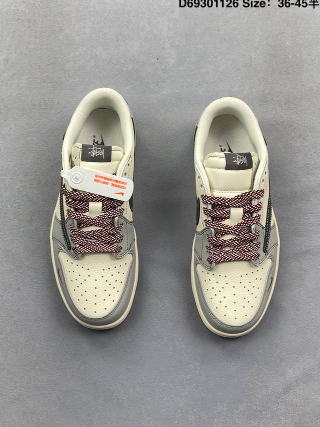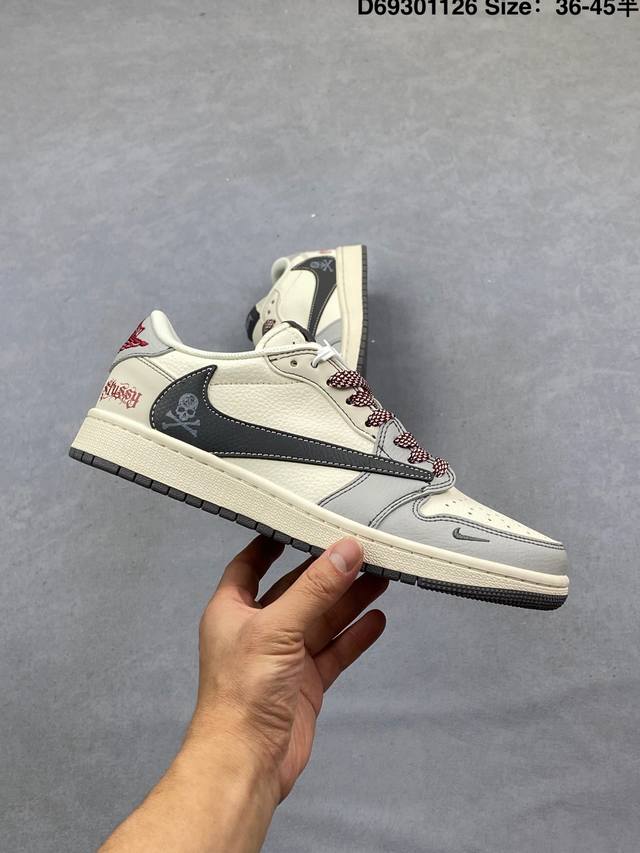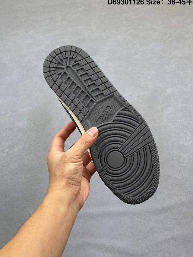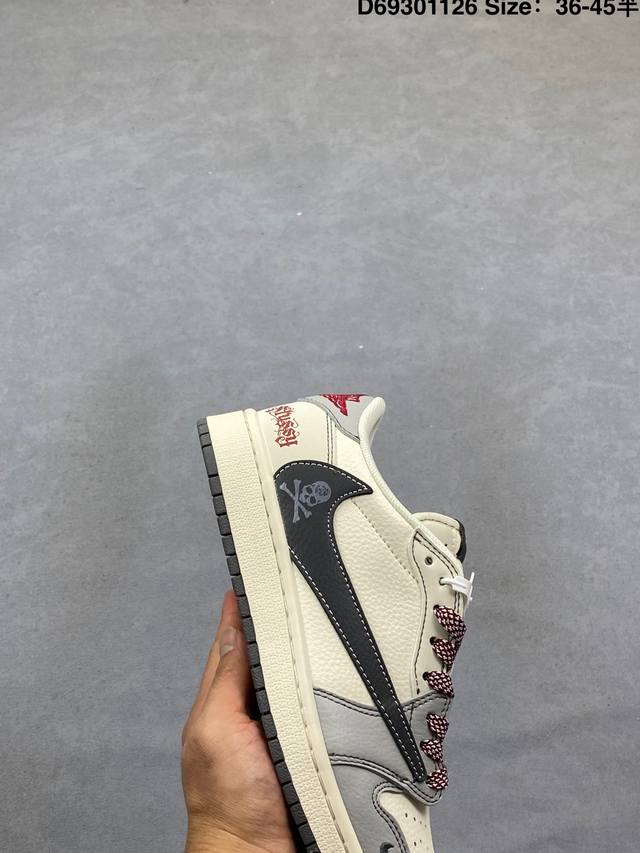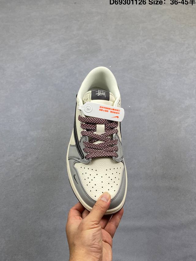 Fragment X Travis Scott X 斯图西 Air Jordan 1 Low 三方联名倒钩 性价比原盒出货 全新的三方联名低帮倒钩鞋面延续了黑脚