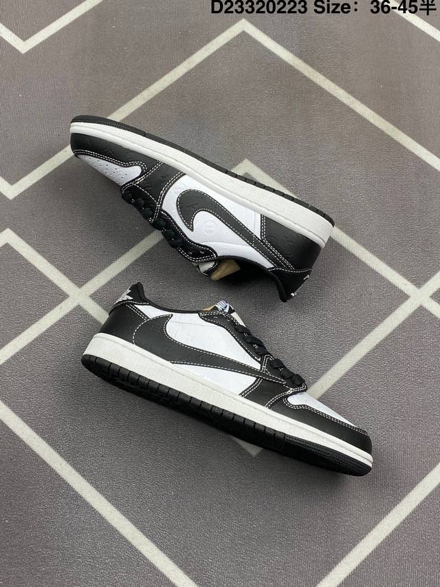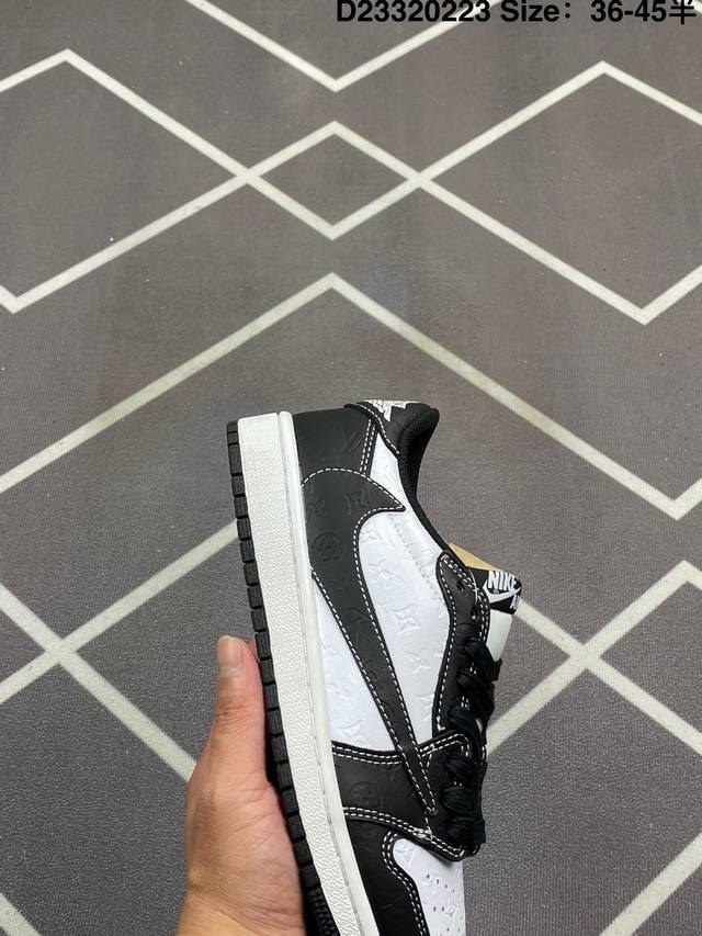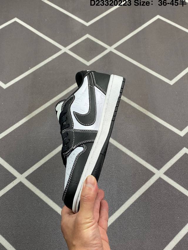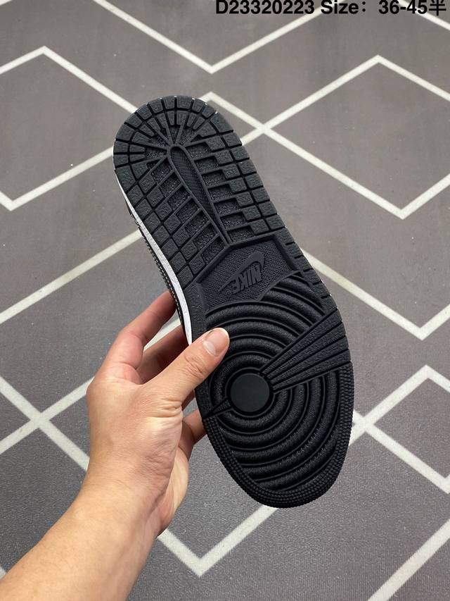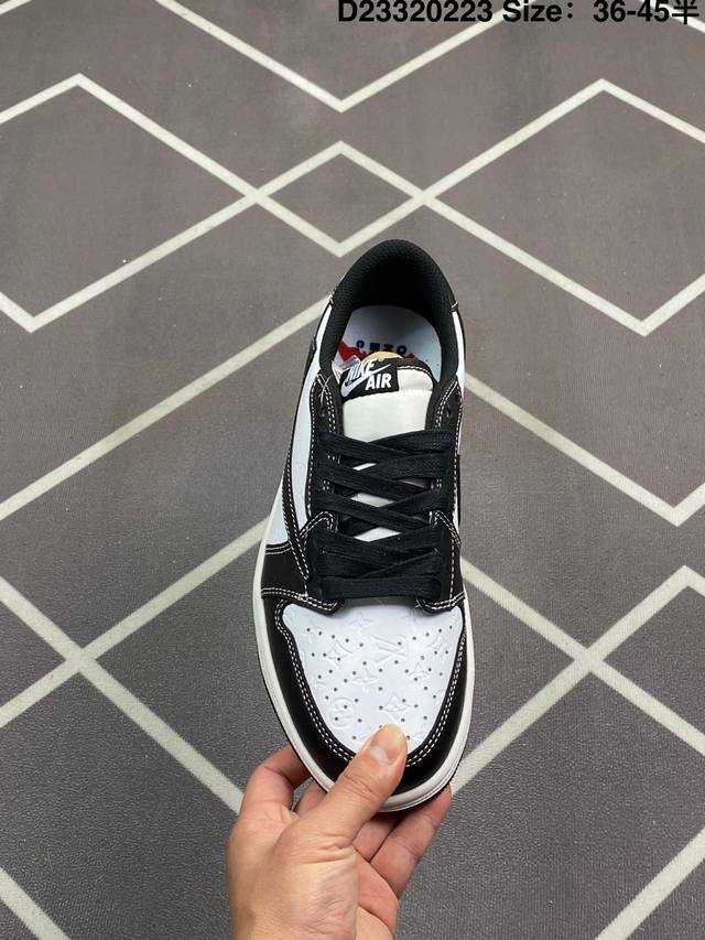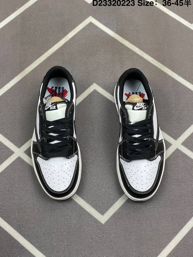 Jordan 乔丹 升级原楦原纸版开发版型,采用软质纳帕头层皮革鞋面材质,鞋垫嵌入缓震Eva物料及中底注胶孔内置真Sole气垫,外置耐磨橡胶隔色大底创意定制颜值超高,洛杉矶知名店铺Union La X Off-White X Nike Air Jordan 1 Low Og Goat Lows Aj1乔丹一代低帮经典复古文化休闲运动篮球鞋“Ow黑白大学蓝倒钩 Dm7866-104
