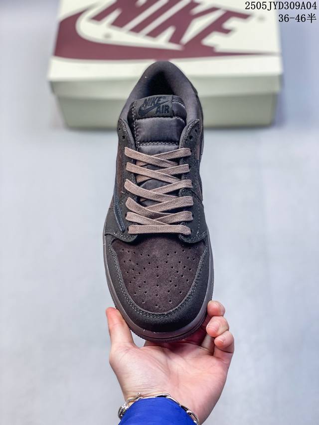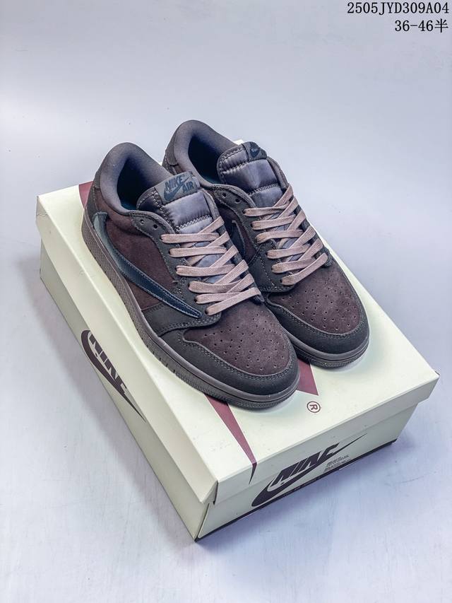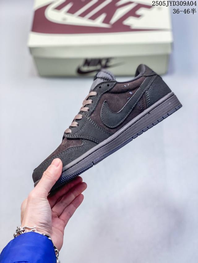 Jordan 乔丹 ,男女鞋半码制,采用牛巴磨砂革组合牛剖革鞋面材质,中底注胶孔内置真Sole气垫,外置耐磨橡胶大底新 倒钩 Aj1 有点不一样!当红嘻哈歌手特拉维斯 斯科特携手Travis Scott X Nike Air Jordan 1 Low Og Sp Velvet Brown Aj1乔丹一代经典低帮文化百搭休闲运动篮球鞋“Ts联名蟑螂侠倒钩