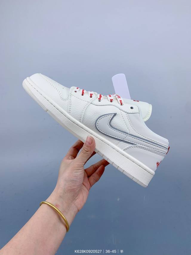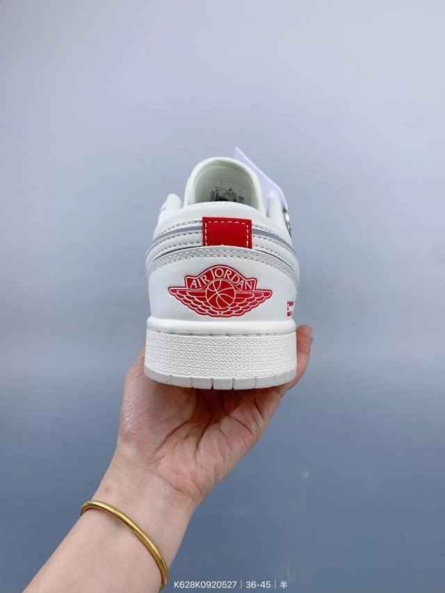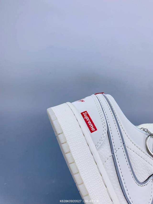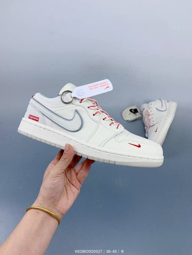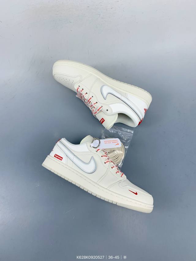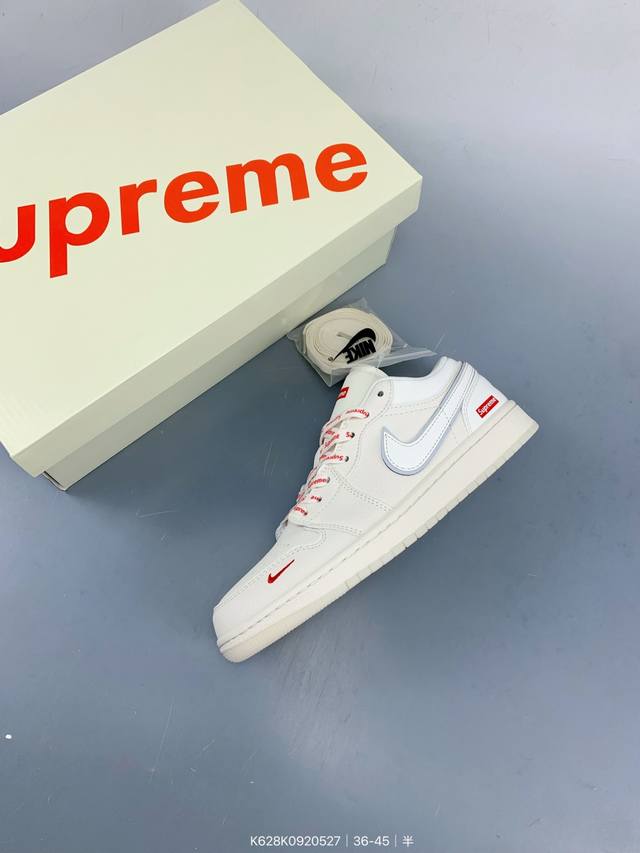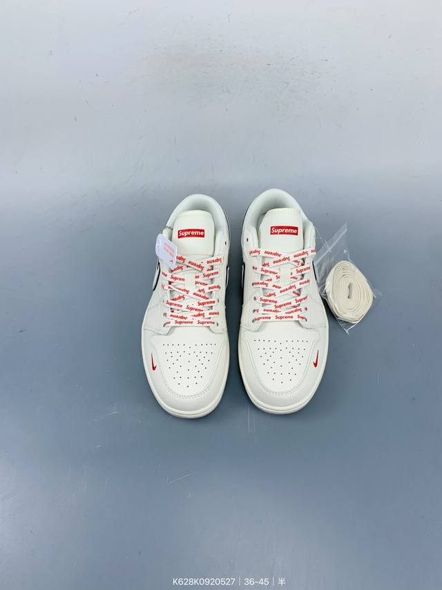 nike Jordan Air Jordan 1 Supreme联名 米白水晶底 高端定制 低帮 复古 减震 防滑 耐磨 篮球鞋 定制鞋盒 大厂纯原品质出货 超高清洁度 皮料切割干净无任何毛边 细节完美
