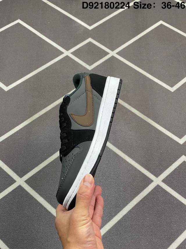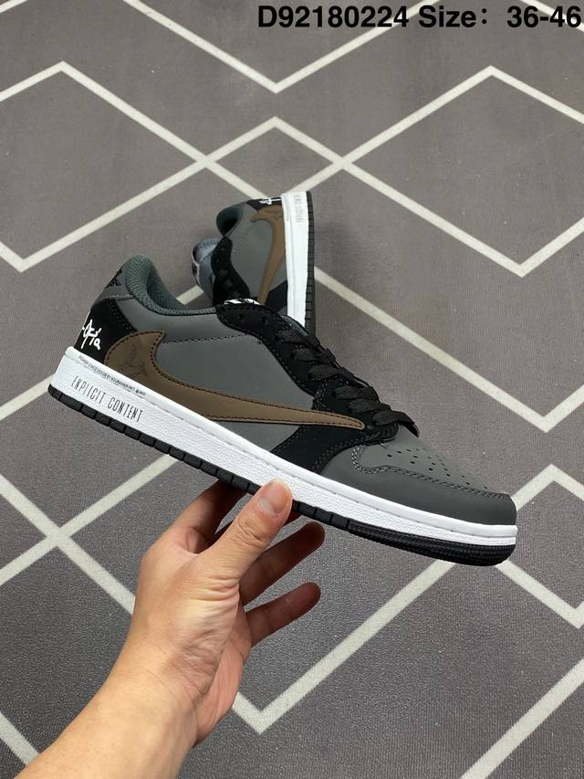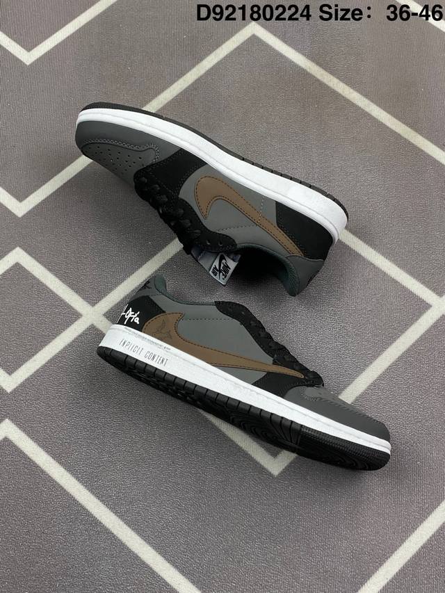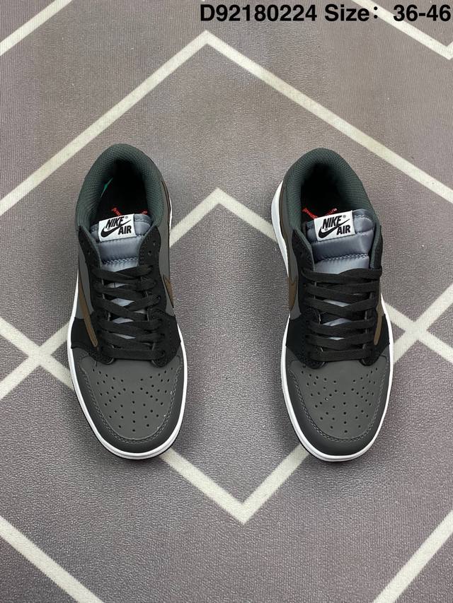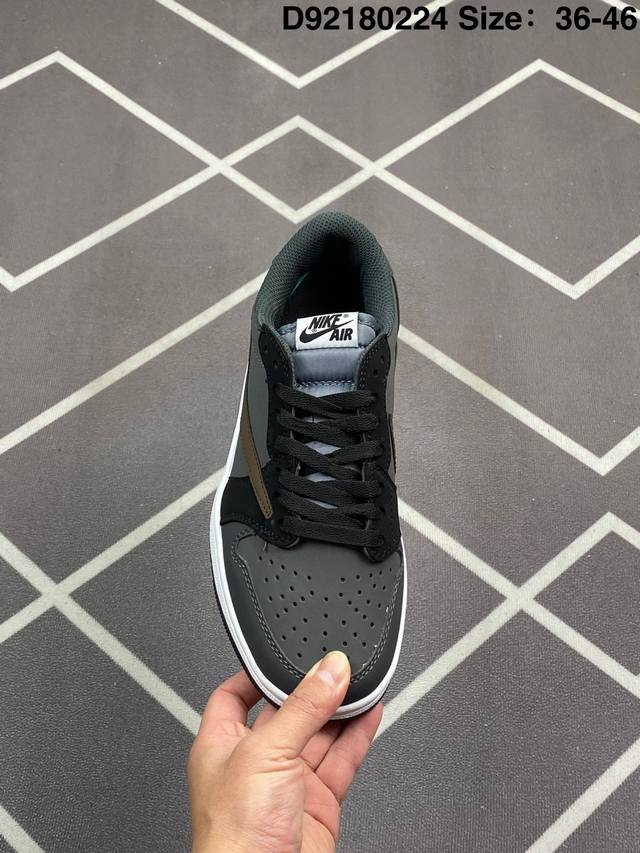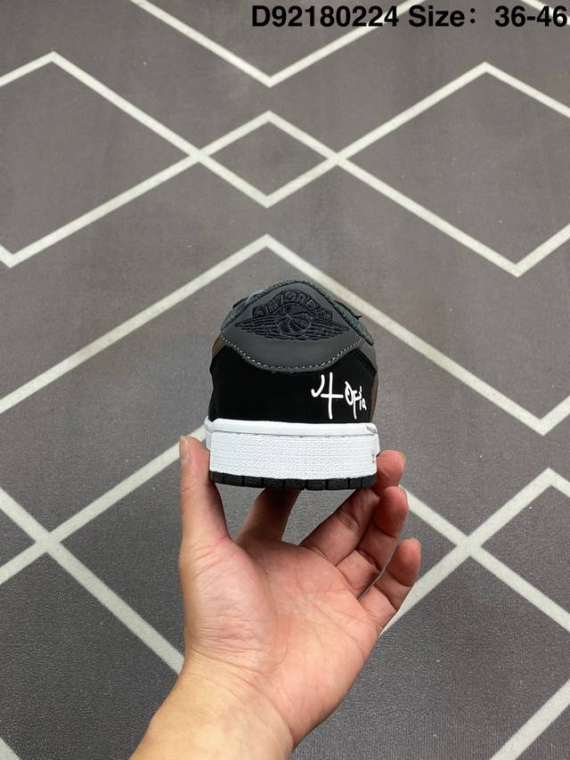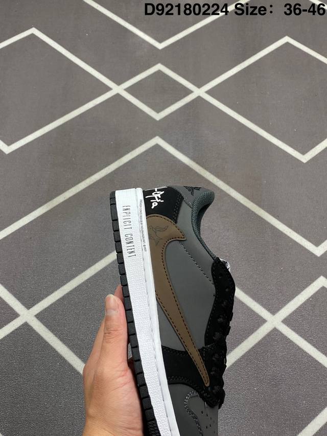 Travis Scott X Air Jordan 1 Low Og Black Phantom 低帮 倒钩4.0 Aj1 乔丹1代 Aj1 乔1 低邦 倒勾乔丹篮球鞋系列 采用黑色磨砂麂皮框架搭配黑色光滑牛巴革麂皮,同时使用有反光效果的白色车线以及缝线来提出鞋子的亮点。后跟分别为小蜜蜂和Wings Logo飞翼标,内衬采用黑色毛绒材质,外侧采用传统的大号后向Swoosh Logo,而内侧则采用常规的Swoosh Logo,标志性的Travisx Scotx细节将包括出现在鞋舌,最后以黑色中底搭配深蓝色外