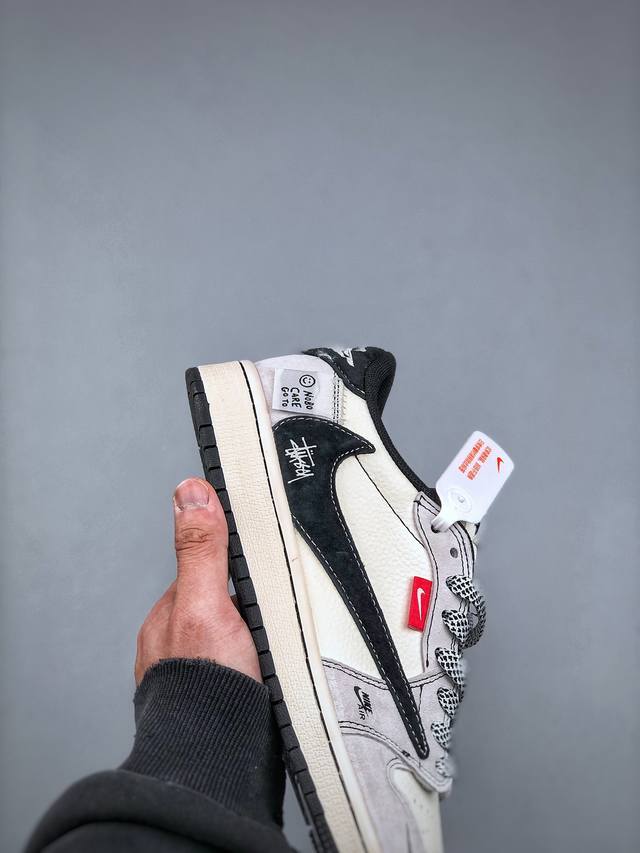 Travis Scott X Fragment Design X Air Jordan 1 Low Og Sp Aj1 乔1 斯图西联名 米黑织布 低帮文化休闲板鞋 Yx5066-301 #多方联名合作融合了Travis Scott 独特的音乐风格,藤原浩个性的设计风格以及Jordan品牌的经典元素 使其成为一双具有独特身份和价值的鞋子 清新而立体的外观加上联名标识更突出了其独特身份 这种配色方案显示出活力和时尚感 在视觉上引人注目 鞋身的质感和细腻的细节处理使其显得高端而格调十足 这款“倒钩”联名是设计