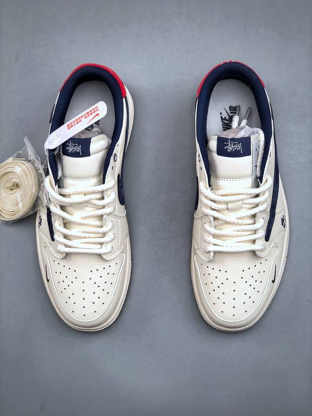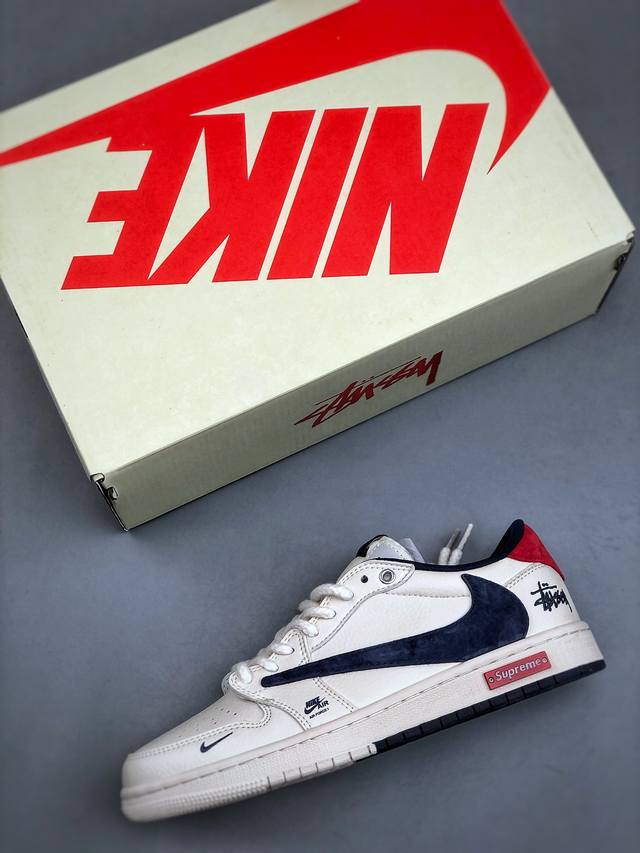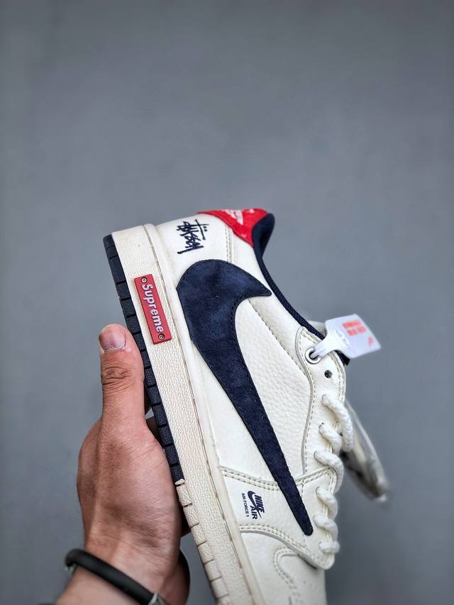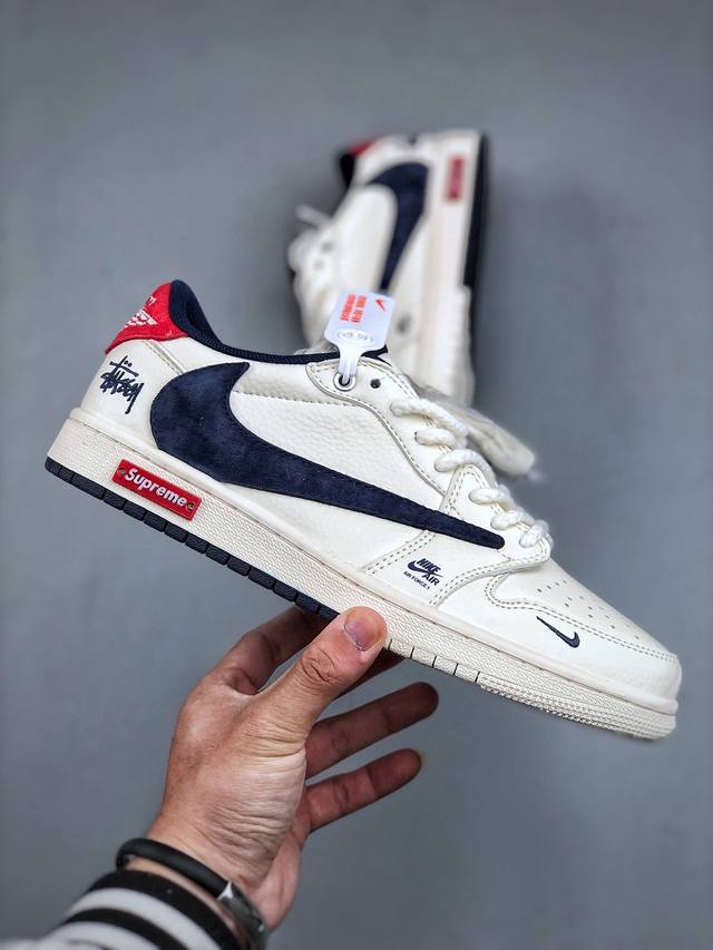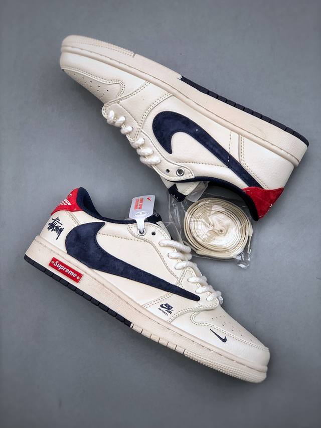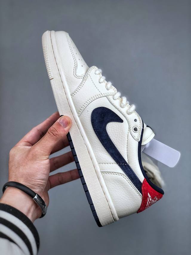 Travis Scott X Fragment Design X Air Jordan 1 Low Og Sp Aj1 乔1 斯图西Supreme联名 双拼 低帮文化休闲板鞋 Sj2068-147 #多方联名合作融合了Travis Scott 独特的音乐风格,藤原浩个性的设计风格以及Jordan品牌的经典元素 使其成为一双具有独特身份和价值的鞋子 清新而立体的外观加上联名标识更突出了其独特身份 这种配色方案显示出活力和时尚感 在视觉上引人注目 鞋身的质感和细腻的细节处理使其显得高端而格调十足 这款“倒钩”
