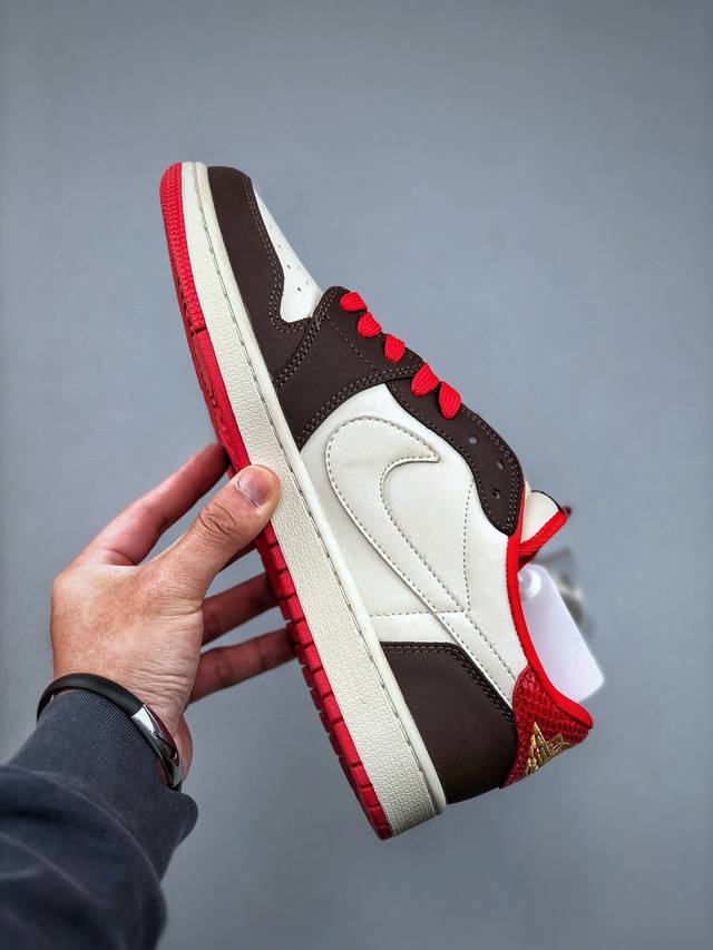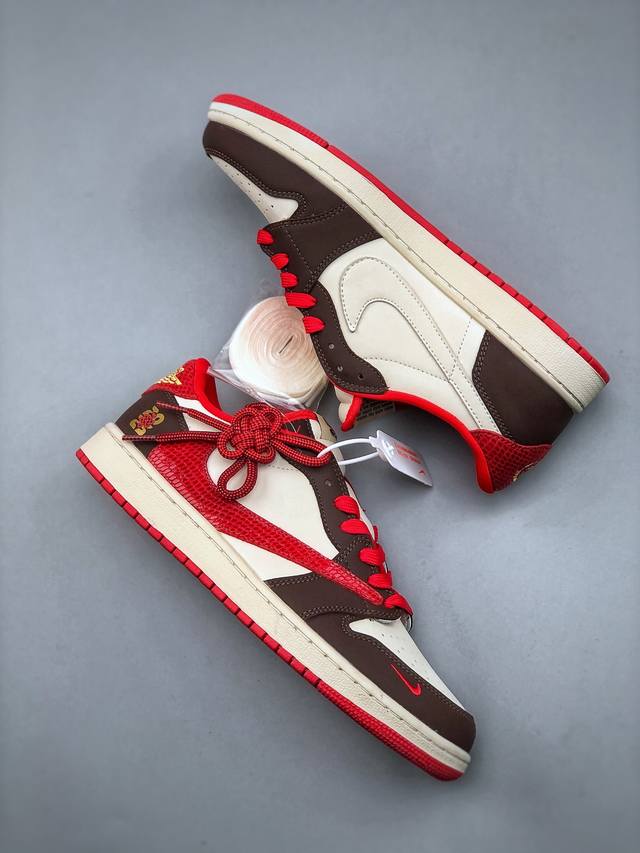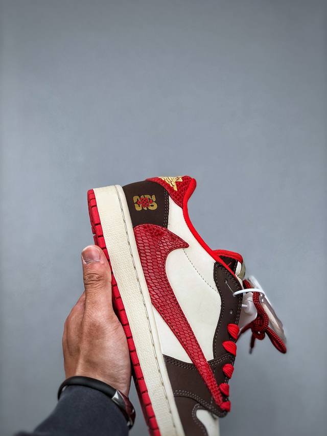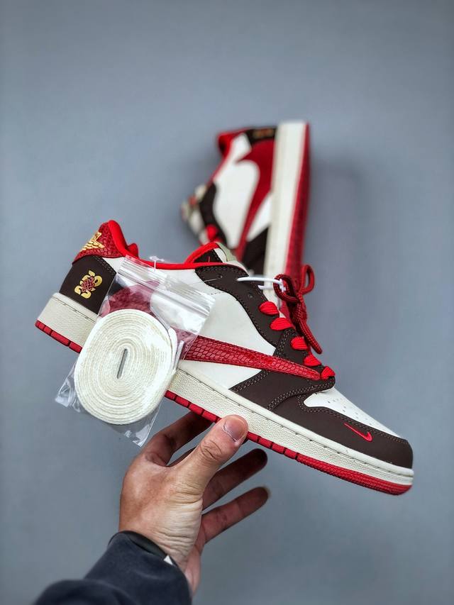 Travis Scott X Fragment Design X Air Jordan 1 Low Og Sp Aj1 乔1 蛇年限定 蛇鳞红勾 低帮文化休闲板鞋货号:Ch6336-020 尺码:36-46 半