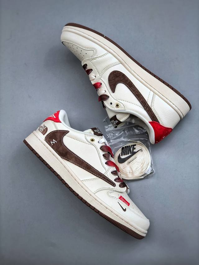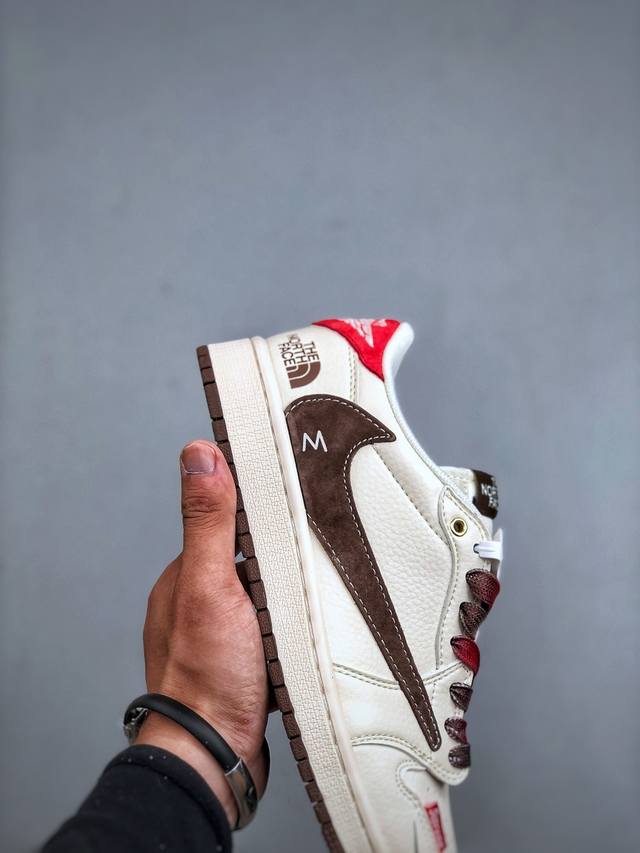 Travis Scott X Fragment Design X Jordan Air Jordan 1 Low Og Sp “北面联名 米棕小红标” 多方联名合作融合了Travi翻毛蓝勾S Scott 独特的音乐风格,藤原浩个性的设计风格以及Jordan品牌的经典元素 使其成为一双具有独特身份和价值的鞋子 清新而立体的外观加上联名标识更突出了其独特身份 这种配色方案显示出活力和时尚感 在视觉上引人注目 鞋身的质感和细腻的细节处理使其显得高端而格调十足 这款“倒钩”联名是设计与创意完美结合 融合多方的个性