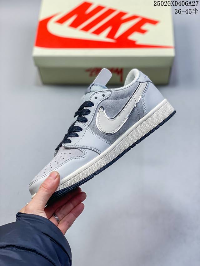 Travis Scott X Fragment Design X Jordan Air Jordan 1 Low Og Sp “斯图西联名 夏蝉灰” 多方联名合作融合了Travis Scott 独特的音乐风格,藤原浩个性的设计风格以及Jordan品牌的经典元素 使其成为一双具有独特身份和价值的鞋子 清新而立体的外观加上联名标识更突出了其独特身份 这种配色方案显示出活力和时尚感 在视觉上引人注目 鞋身的质感和细腻的细节处理使其显得高端而格调十足 这款“倒钩”联名是设计与创意完美结合 融合多方的个性风格是一款