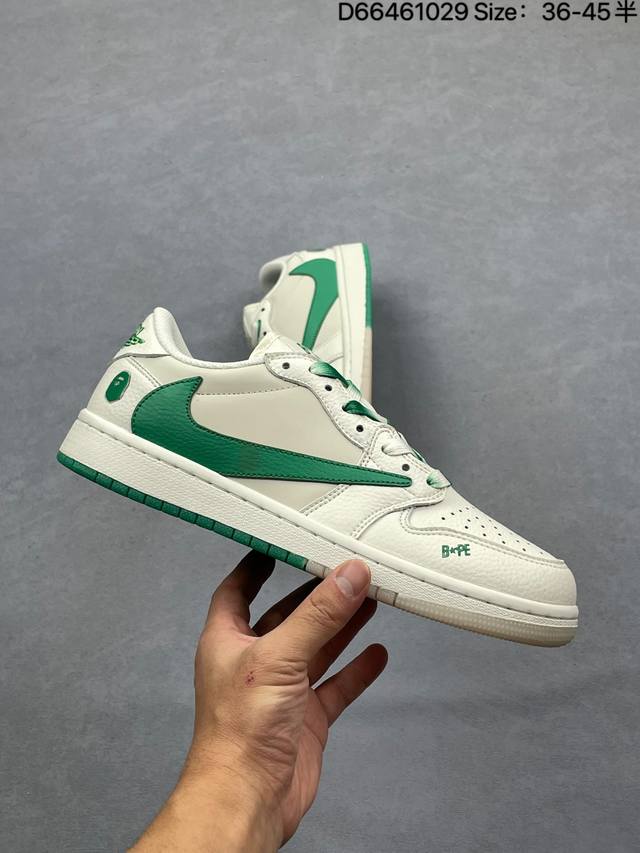 Travis Scott X Fragment Design X Jordan Air Jordan 1 Low Og Sp Bape联名 “白蓝” 多方联名合作融合了Travis Scott 独特的音乐风格,藤原浩个性的设计风格以及Jordan品牌的经典元素 使其成为一双具有独特身份和价值的鞋子 清新而立体的外观加上联名标识更突出了其独特身份 这种配色方案显示出活力和时尚感 在视觉上引人注目 鞋身的质感和细腻的细节处理使其显得高端而格调十足 这款“倒钩”联名是设计与创意完美结合 融合多方的个性风格是一款