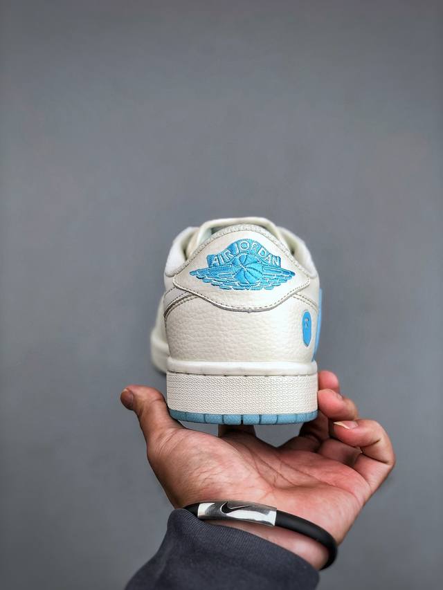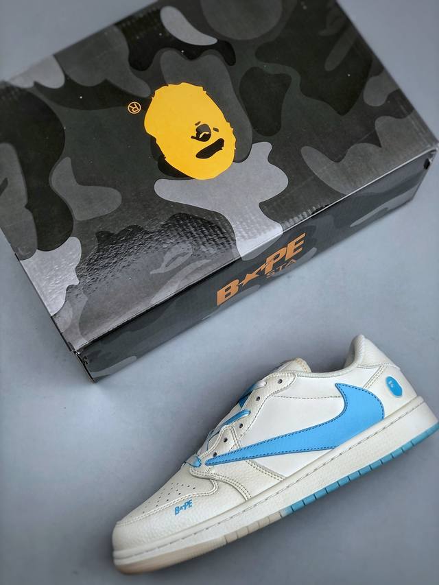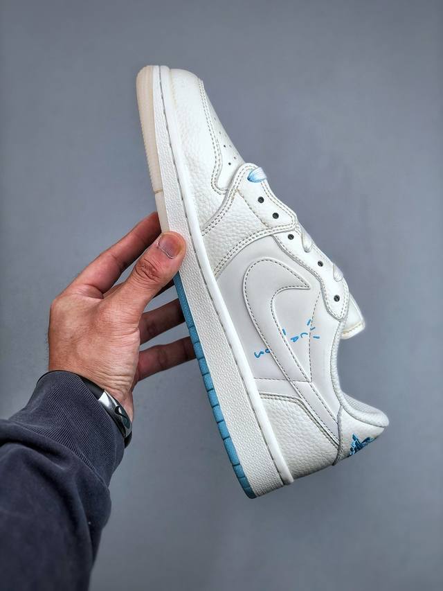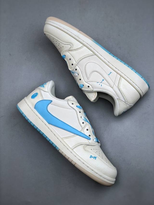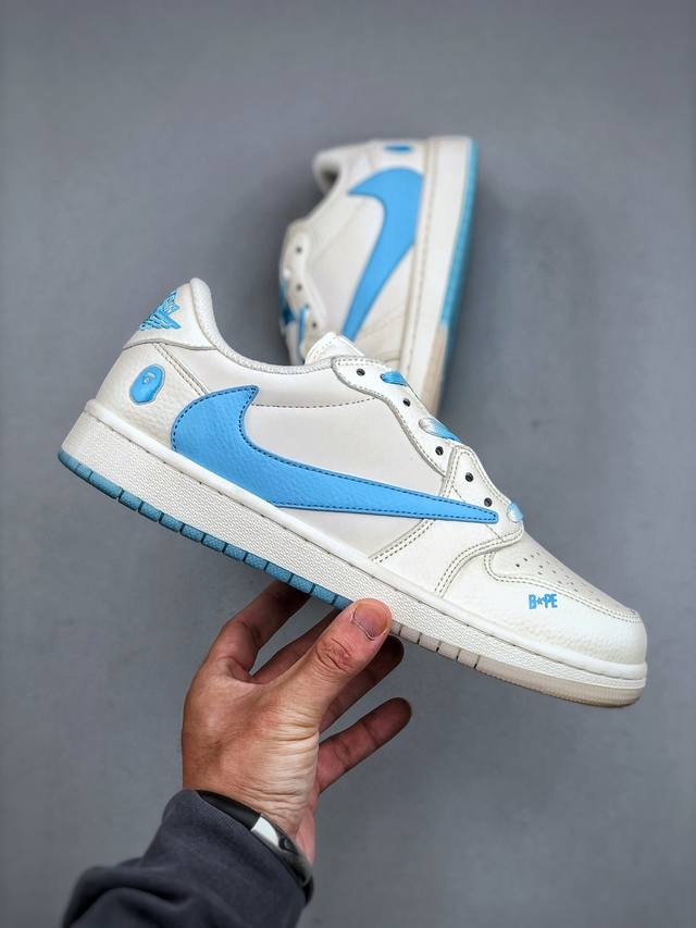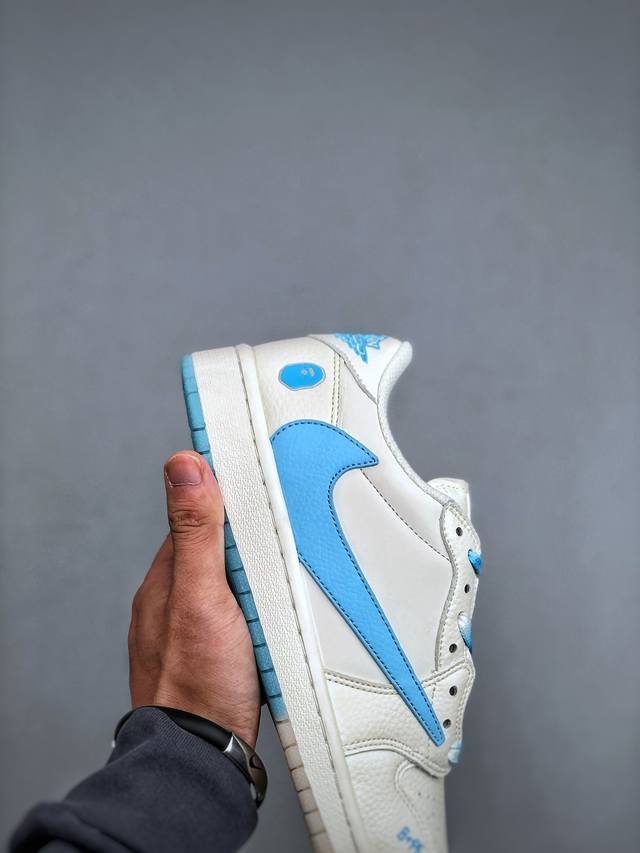 Travis Scott X Fragment Design X Jordan Air Jordan 1 Low Og Sp Bape联名 “白蓝” 多方联名合作融合了Travis Scott 独特的音乐风格,藤原浩个性的设计风格以及Jordan品牌的经典元素 使其成为一双具有独特身份和价值的鞋子 清新而立体的外观加上联名标识更突出了其独特身份 这种配色方案显示出活力和时尚感 在视觉上引人注目 鞋身的质感和细腻的细节处理使其显得高端而格调十足 这款“倒钩”联名是设计与创意完美结合 融合多方的个性风格是一款