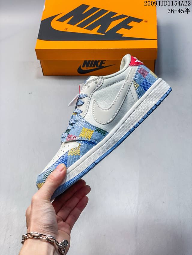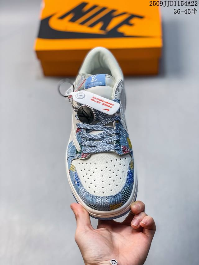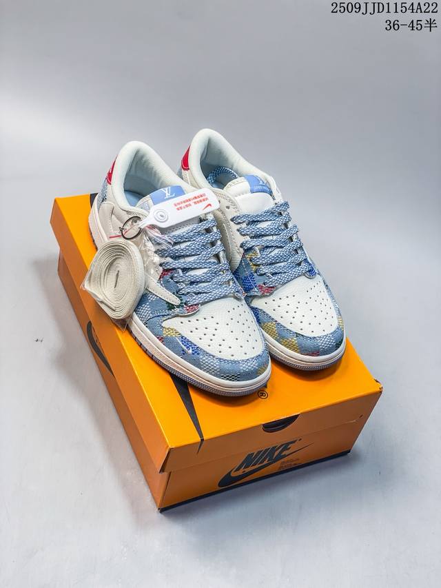 Travis Scott X Fragment Design X Jordan Air Jordan 1 Low Og Sp “Lv联名 五彩帆布” 多方联名合作融合了Travi翻毛蓝勾S Scott 独特的音乐风格,藤原浩个性的设计风格以及Jordan品牌的经典元素 使其成为一双具有独特身份和价值的鞋子 清新而立体的外观加上联名标识更突出了其独特身份 这种配色方案显示出活力和时尚感 在视觉上引人注目 鞋身的质感和细腻的细节处理使其显得高端而格调十足 这款“倒钩”联名是设计与创意完美结合 融合多方的个性风