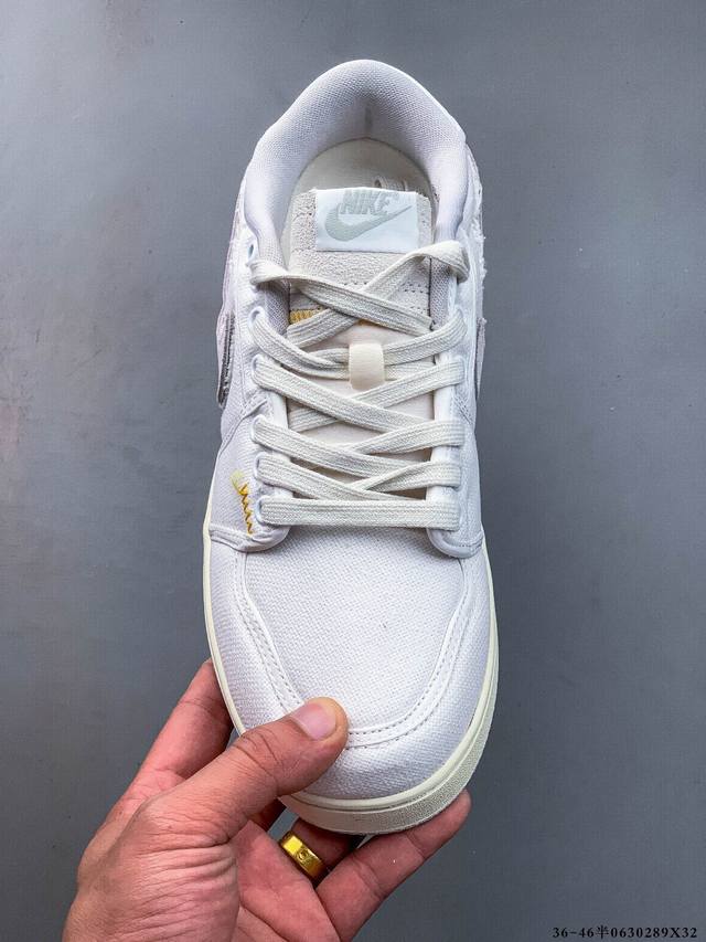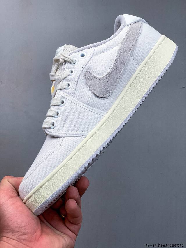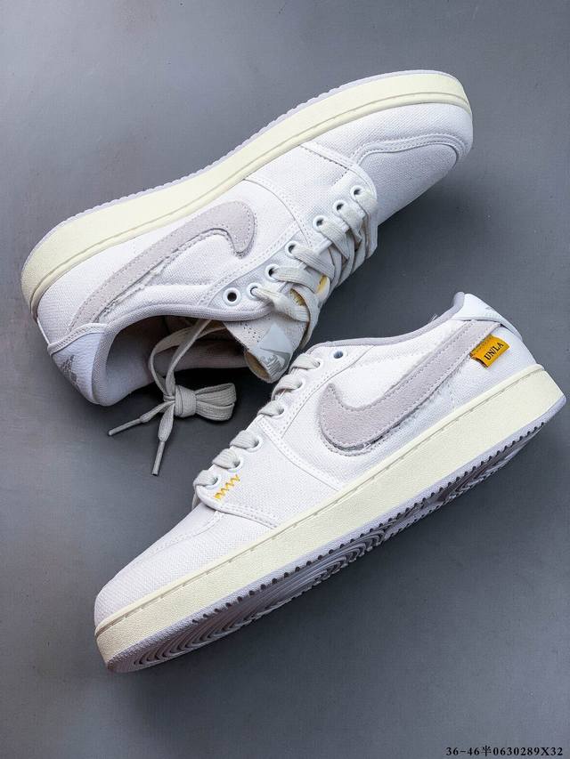 Uion La X Air Jordan Aj1 Ko Low 低帮复古篮球鞋 选用帆布与麂皮材质进行设计 鞋侧 Swoosh 依旧以魔术贴设计出现 而随鞋附赠
