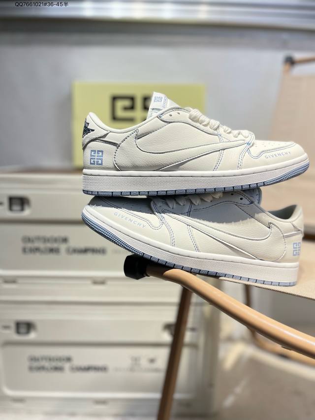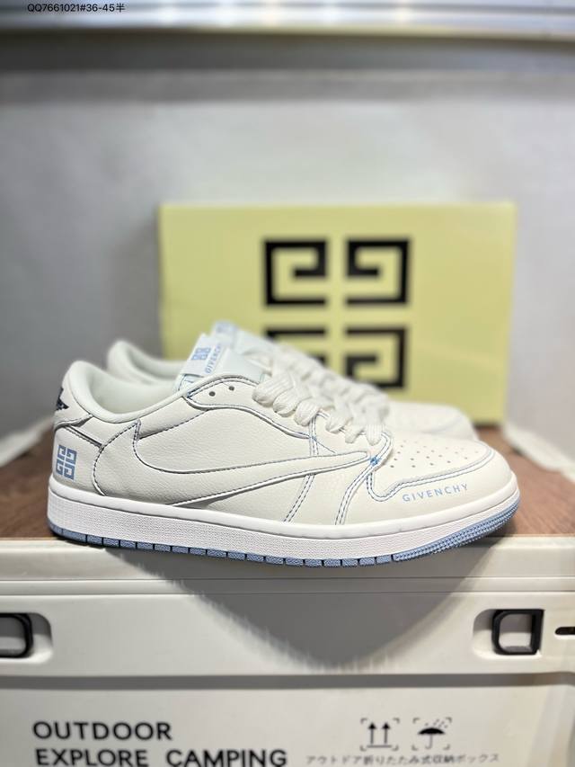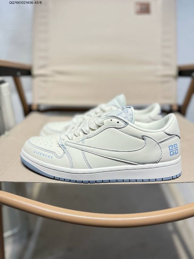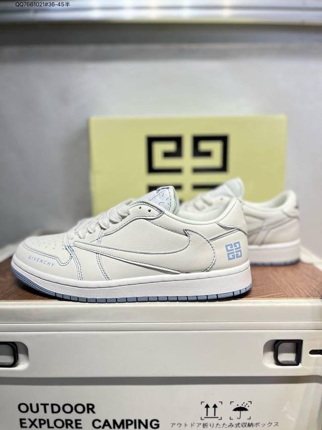 放店私 Travis Scott X Fragment Design X Air Jordan 1 Low Og Sp Aj1 乔1 斯图西联名 灰蓝英文红标
