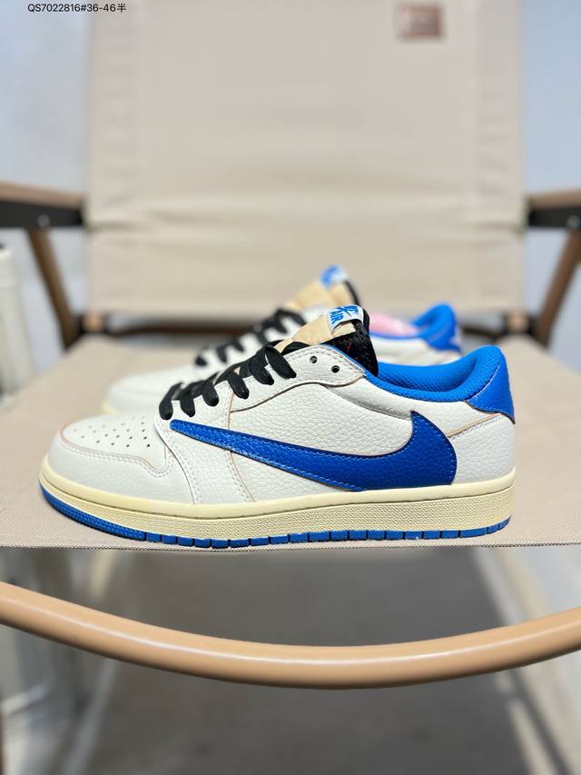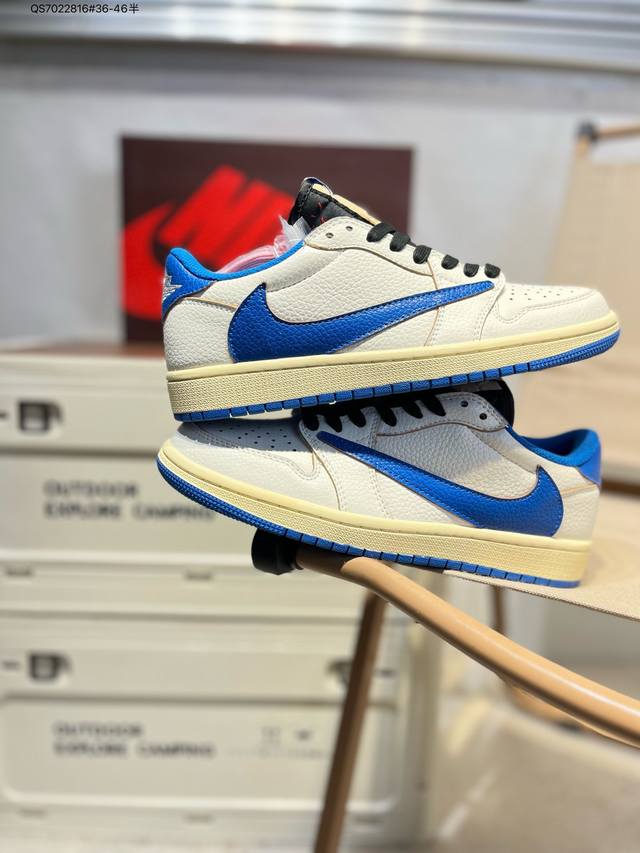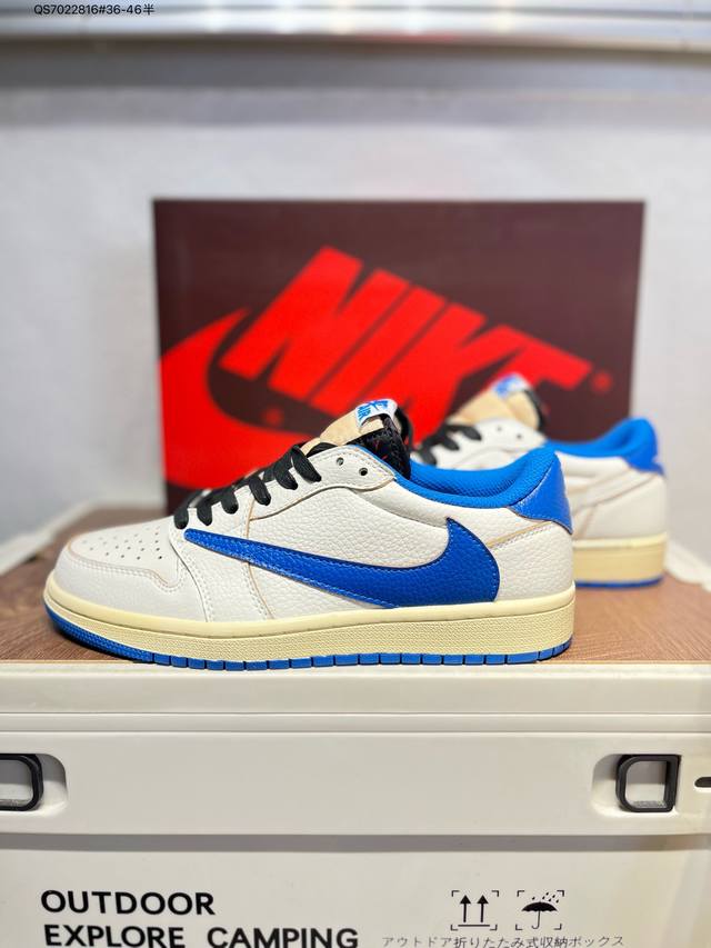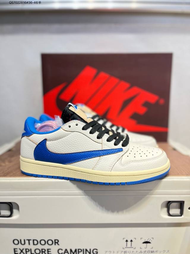 350 定制重磅三方联名,当红嘻哈歌手特拉维斯·斯科特 Air Jordan 1 Low Og Sp"Damier Azur/Brown/迪奥 Aj1乔丹一代经