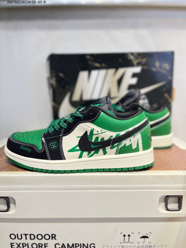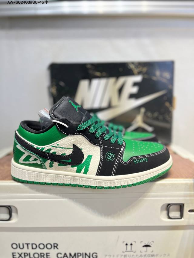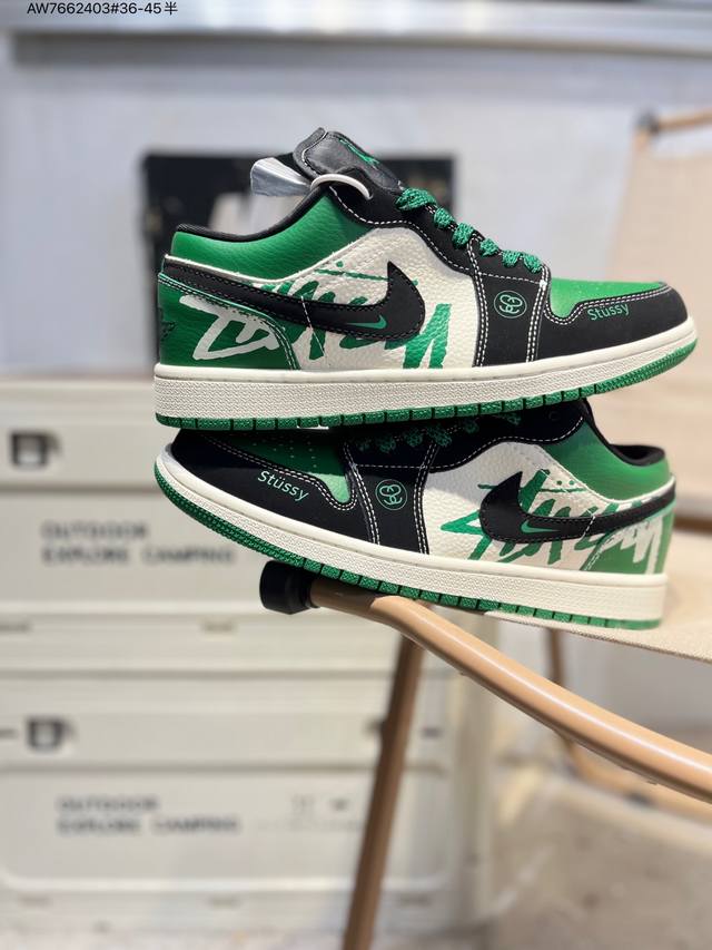 230 定制鞋盒 纯原大厂# 斯图西 X乔丹Air Jordan 1 Low Aj1低帮系列篮球鞋 官方同步配色 原装级产物 #拒绝公底 立体鞋型 细节完美 高
