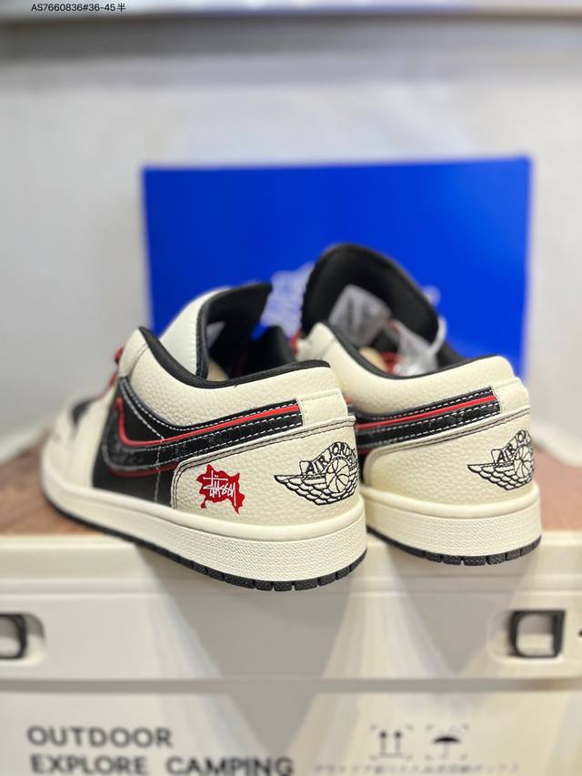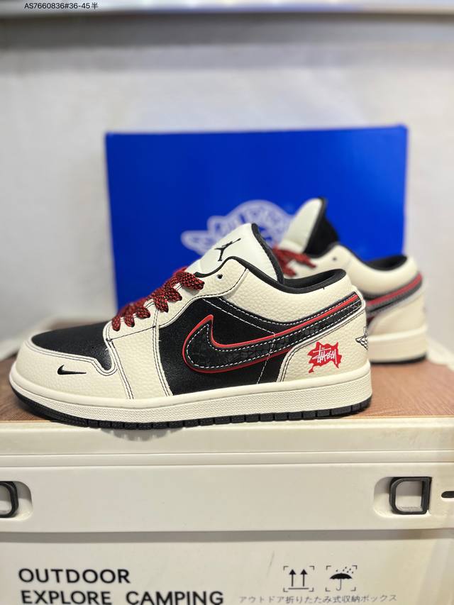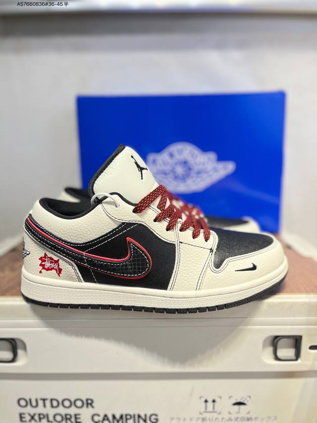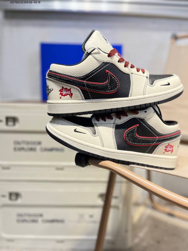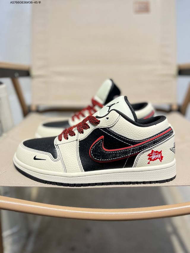 公司级头层皮斯图西 X 乔丹Air Jordan 1 Low Aj1低帮系列篮球鞋 官方同步配色 原装级产物 DDD #拒绝公底 立体鞋型 细节完美 高清洁度Qg1988 As7660836#36-45半 DDD