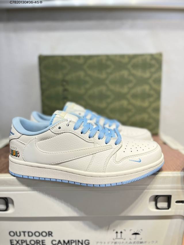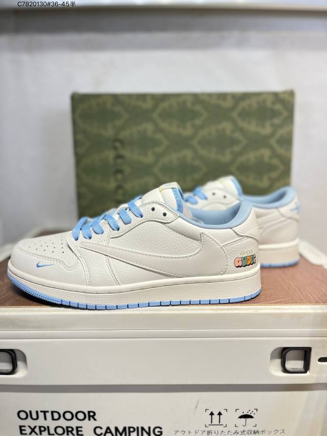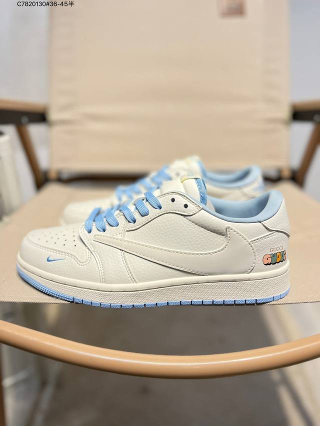 渠道优势 ! X版:顶级Aj1 棕白 6.0 Travis Scott X Jordan Air Jordan 1 Low Ganay 圆头舒适,减震耐磨 低帮