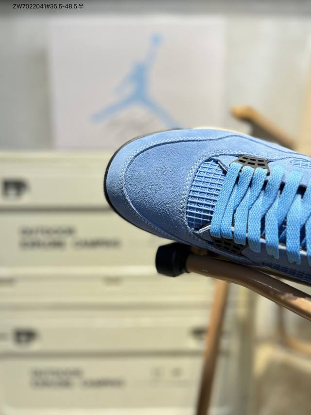 FFF 最新市面纯原顶级版本价 长期特价认准得物版本鞋盒四字标志 成熟流水线,稳定出货生产 DDD 原装全头层#原楦原档案开发纸版楦型#采用优质头层皮革鞋面材质#还原Zp细节#原厂流水成型工艺#厂级拉帮注胶效果 # 上脚真的超帅 Air Jordan 4 X Travis Scott Cactus Jack Ts联名 冰蓝 Aj4代中帮复古休闲运动文化篮球鞋。 秉承轻量化的速度型篮球鞋设计思想完成设计,降低重量的同时提升舒适度,中底延续前作使用了分离式后掌可视化 Air Sole气垫。鞋带孔和后跟鞋提以籃