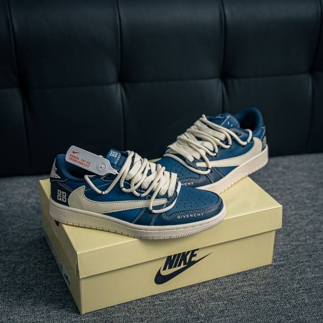 Travis Scott X Fragment Design X Air Jordan Aj1 Low Og Sp 三方联名闪电倒钩 低帮 白蓝黑 Dm7866