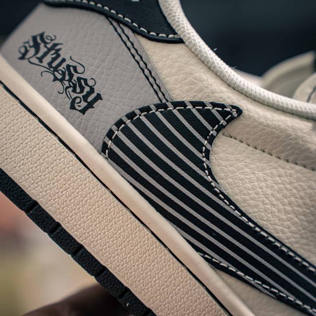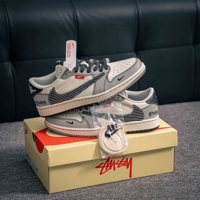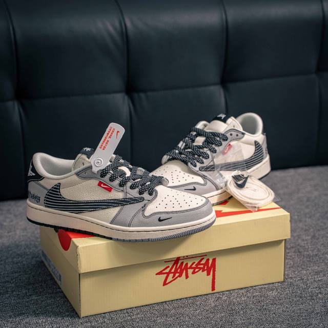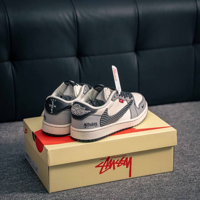 放店私 Fragment X Travis Scott X 斯图西 Air Jordan 1 Low 三方联名倒钩 性价比原盒出货 全新的三方联名低帮倒钩鞋面延