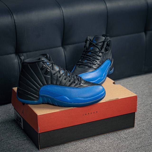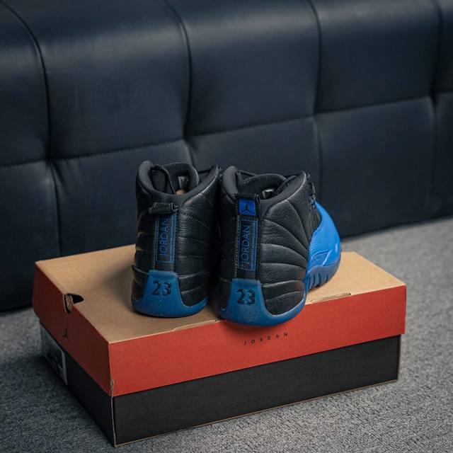 Air Jordan 12 Game Royal 黑蓝 潮流篮球运动鞋。在原有经典复刻配色的基础上,不仅添加了功能性皮料,全新配色也相继推出。此双整体设计与经典的 Air Jordan 12 “黑红” 类似,鞋面黑色头层荔枝皮,大底原厂碳板加固 ,中底内置Zoom气垫 。侧面原有红色部分替换为皇家蓝配色,整体奢华气质尽显。
