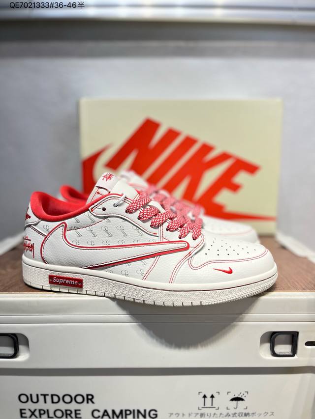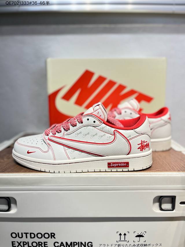 220 定制鞋盒 纯原大厂# 斯图西 X乔丹Air Jordan 1 Low Aj1低帮系列篮球鞋 官方同步配色 原装级产物 #拒绝公底 立体鞋型 细节完美 高