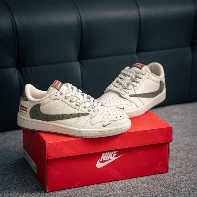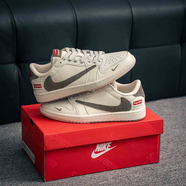 fragment X Travis Scott X Nba air Jordan 1 Low 三方联名倒钩 全新的三方联名低帮倒钩鞋面延续了黑脚趾设计 整双鞋以