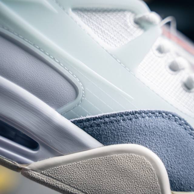 鞋身整体保留了 Air Jordan Iv的大致轮廓 鞋侧的网眼和 Tpu三角支撑设计被取消 鞋款设计上更简约 辅以墨绿色麂皮鞋面