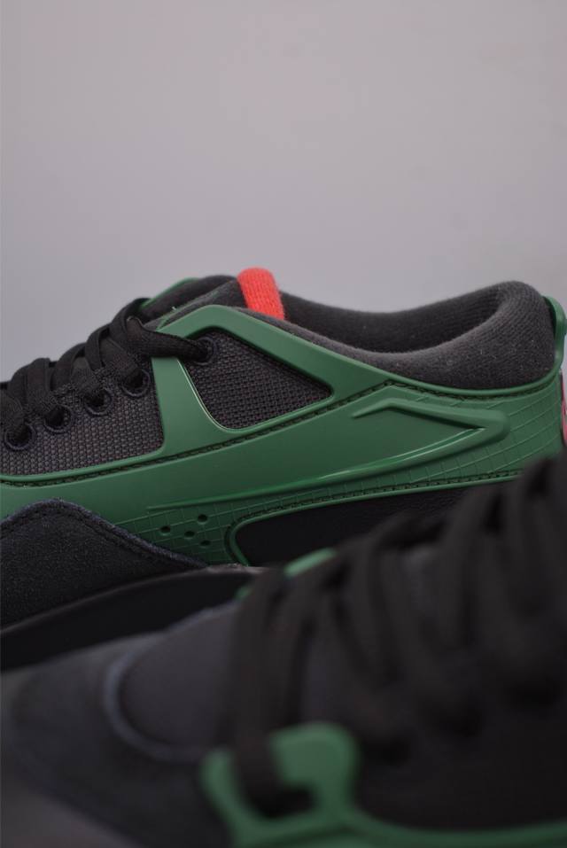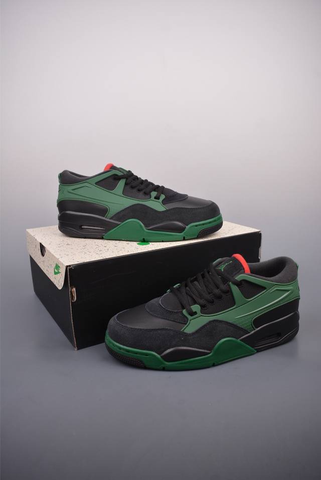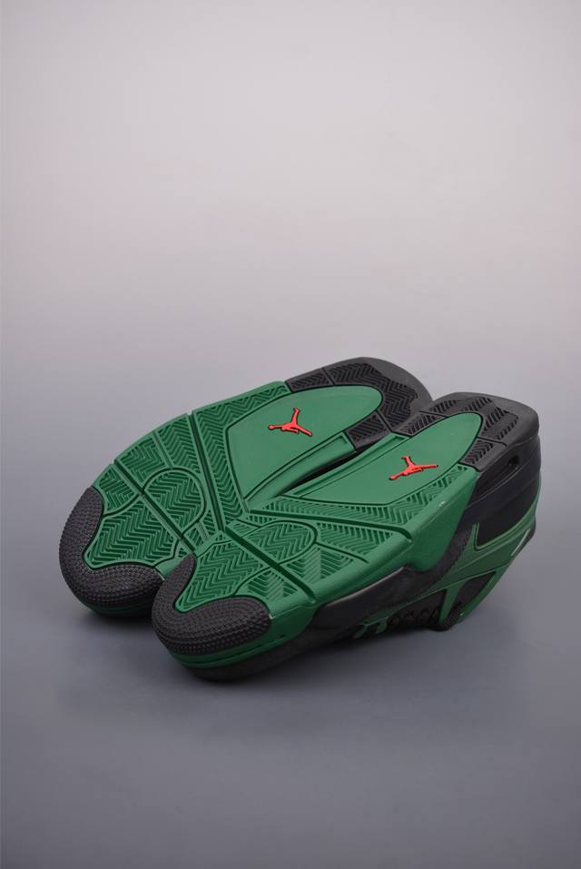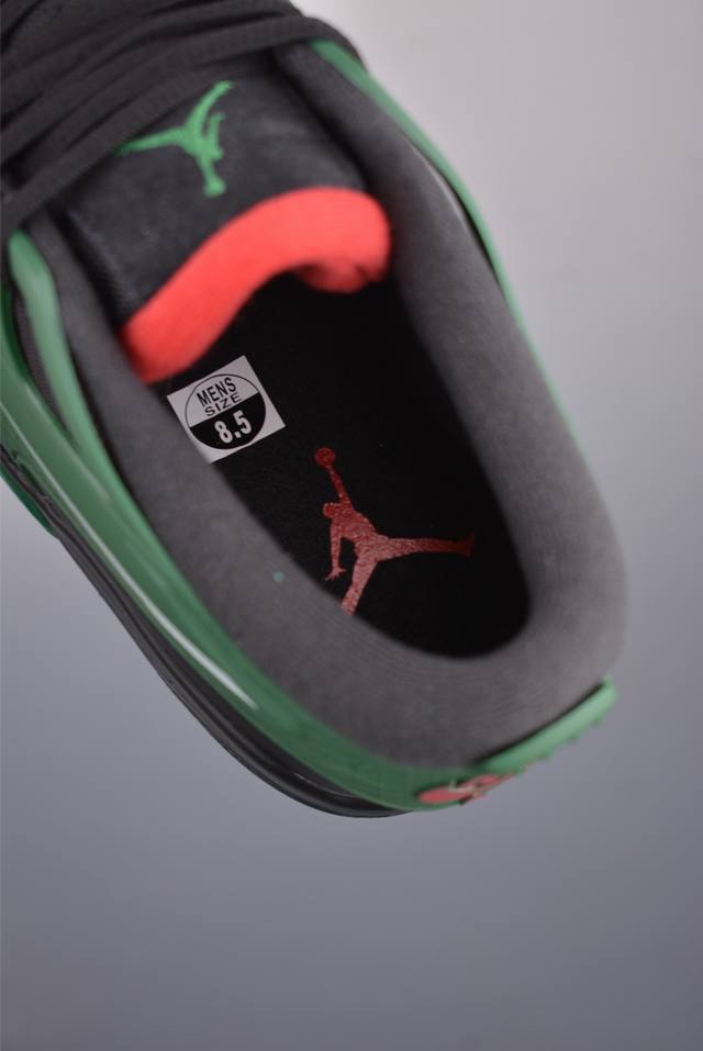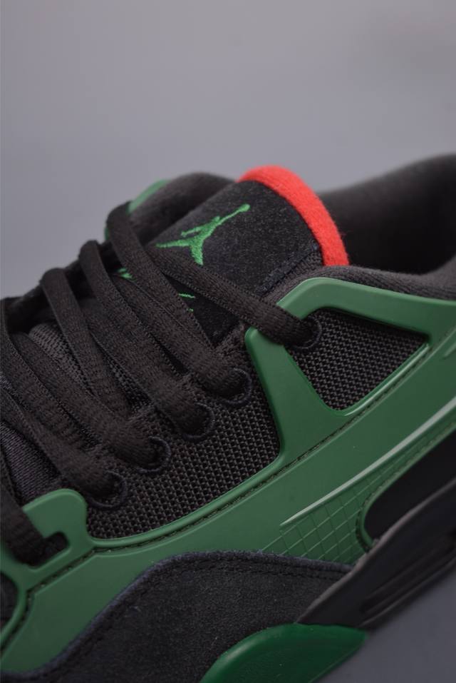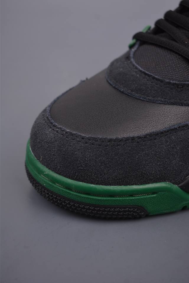 鞋身整体保留了 Air Jordan Iv的大致轮廓 鞋侧的网眼和 Tpu三角支撑设计被取消 鞋款设计上更简约 辅以墨绿色麂皮鞋面