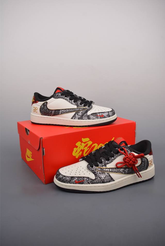 性价比原盒出货 全新的三方联名低帮倒钩鞋面延续了黑脚趾设计,整双鞋以全荔枝皮打造,腰身搭配白色「倒勾」,再点缀上Travis Scott 标志性的Logo,后跟处以藤原浩最拿手的蓝色为主色调,完善极具Fragment Design的白蓝黑设计风格,左右脚分别以Travis Scott鬼脸和乔丹飞翼加以修饰,彰显出三方联名的奢华格调。