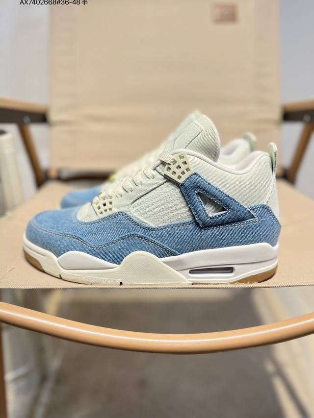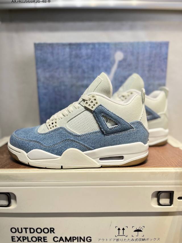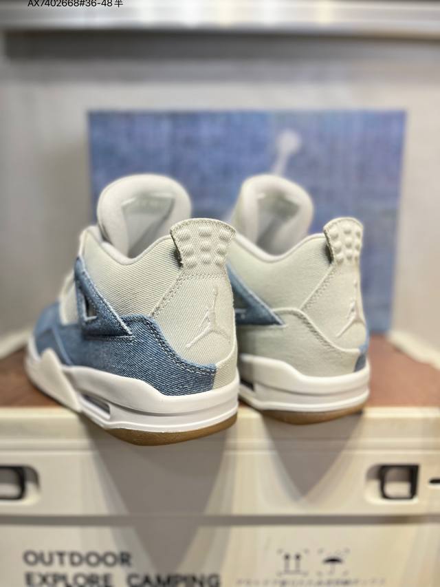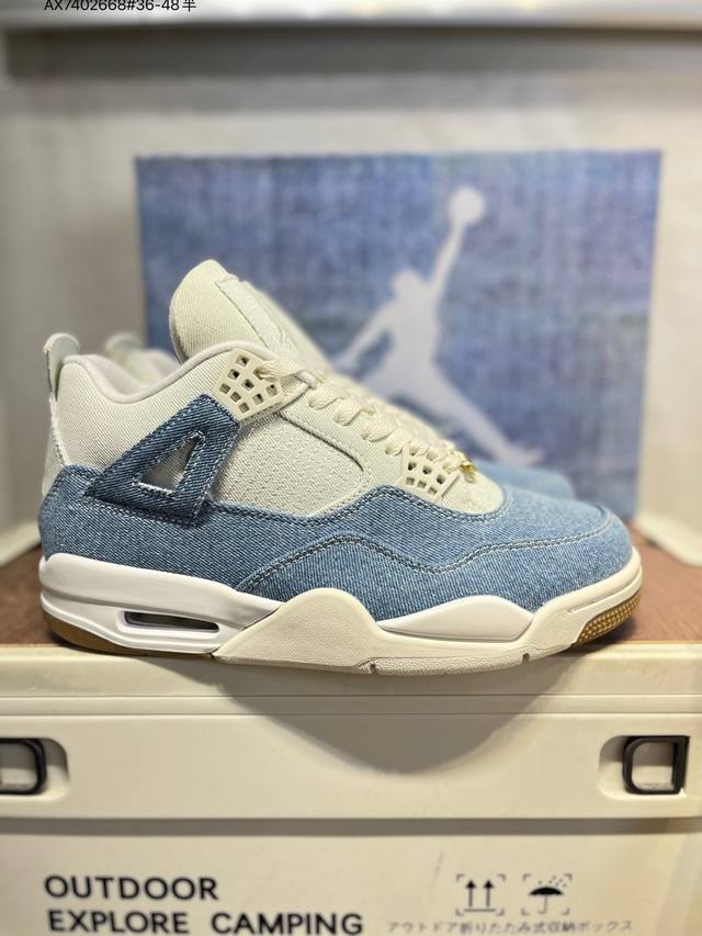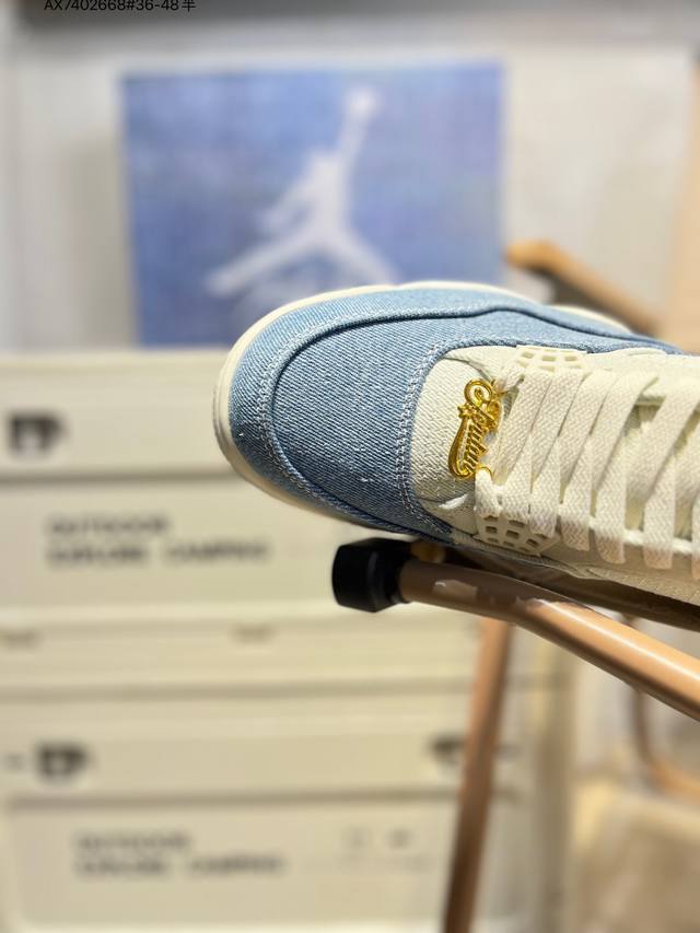 Air Jordan 4 Retro Denim Worn Blue 蓝灰牛仔 原厂私磨 原厂纸板 原厂包装 完美走线 鞋舌弧度有型 致力打造精致。 这款球鞋采用浅色和深色牛仔材料的混合,并且还专门留下了毛边与不规则褪色纹理,带来自然磨损的复古韵味,创造出-种层次分明的视觉效果;鞋身上的缝合线与破旧细节相得益彰,共同营造出一种粗犷而不失细腻的复古风格;在Aj4标志性的网状透气格、Tpu支持部分均采用牛仔布打造,鞋带顶端饰有金色点缀,为整双鞋增添了优雅气质。鞋舌上Jumpman Llogo及Flighth采