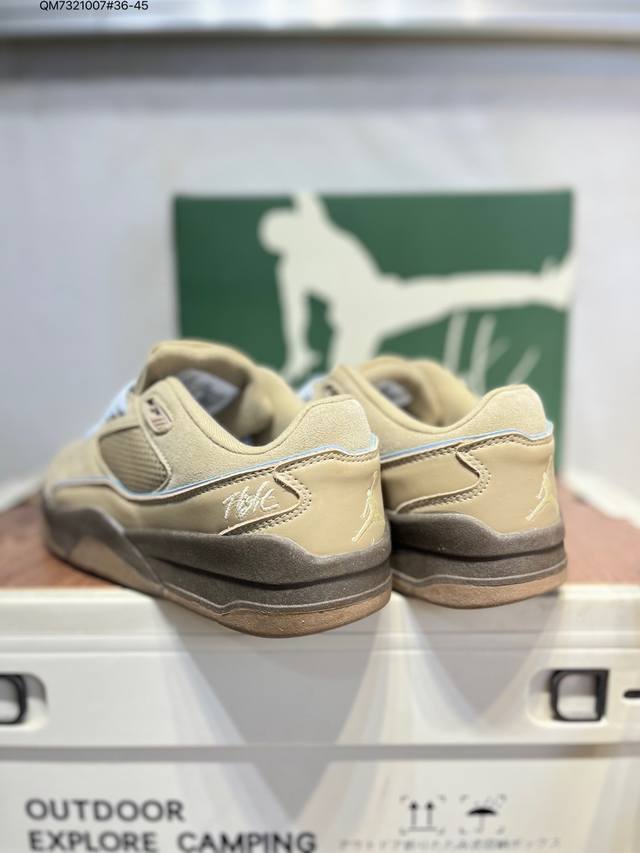 Air Jordan 4 Retro Flight Court 低帮 米紫色 Aj4 乔丹4代 Aj4 乔4 低邦 白紫色 乔丹篮球鞋系列 鞋款整体以米白色皮革打造,鞋舌及后跟Jumpxman Logo采用紫色刺绣点缀,后跟侧身Flight字样也辅以紫色刺绣呈现,秉承轻量化的速度型篮球鞋设计思想完成设计,降低重量的同时提升舒适度,中底延续前作使用了分离式后掌可视化Air Solem气垫。鞋带孔和后跟鞋提以籃网为造型灵感,将篮球运动巧妙融入到鞋款的设计之中,使鞋身整体富有流动性、节奏感和优雅气质。 DDD