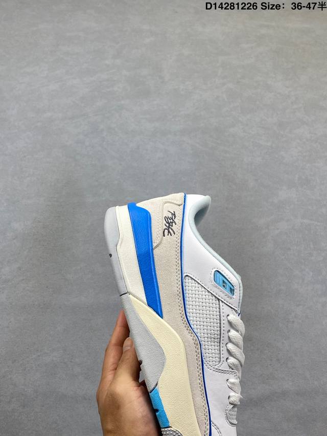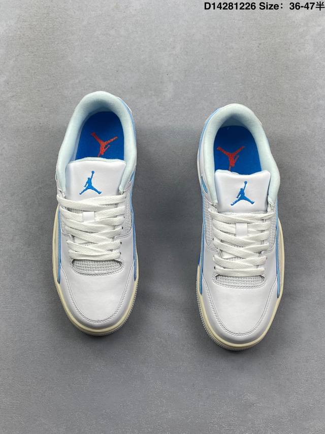 Air Jordan 4 Retro Flight Court 低帮 Aj4 乔丹4代 Aj4 乔4 低邦 白紫色 乔丹篮球鞋系列 鞋款整体以米白色皮革打造,鞋舌及后跟Jumpxman Logo采用紫色刺绣点缀,后跟侧身Flight字样也辅以紫色刺绣呈现,秉承轻量化的速度型篮球鞋设计思想完成设计,降低重量的同时提升舒适度,中底延续前作使用了分离式后掌可视化Air Solem气垫。鞋带孔和后跟鞋提以籃网为造型灵感,将篮球运动巧妙融入到鞋款的设计之中,使鞋身整体富有流动性、节奏感和优雅气质。 Ddd 货号:F