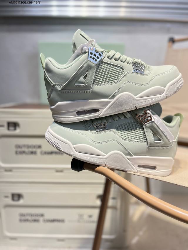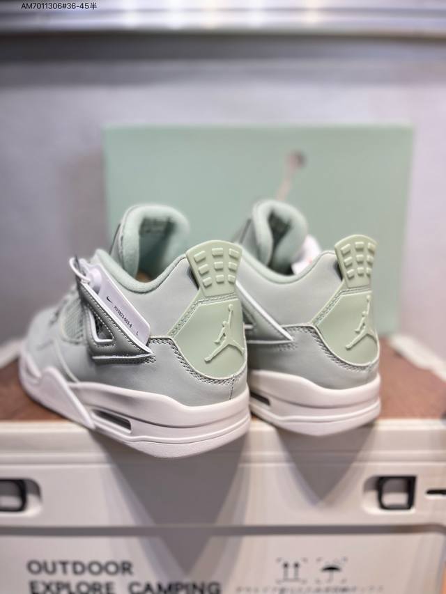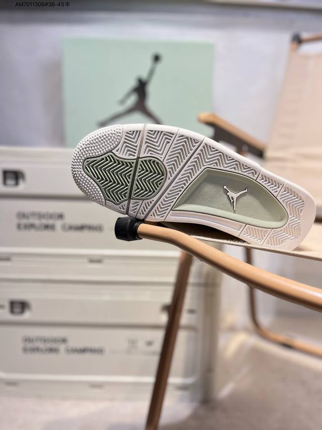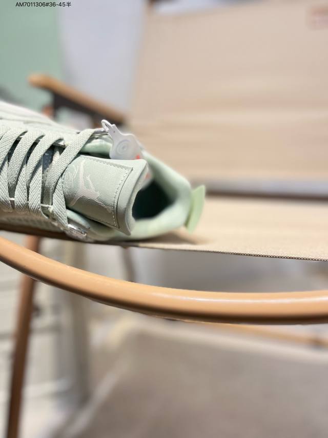 鞋身整体以绿色皮革为主色调,辅以银色点缀,搭配绿色的鞋带,让鞋子看起来更有整体感。鞋侧身绿色格网透出绿色内层,鞋舌顶端绿色的标签,以白色Jumpman Logo以及白色Flight刺绣字样,彰显球鞋身份。鞋带孔部位的Tpu装饰采用银色呈现,更具细节感。鞋帮部分和后跟位置的提环使用绿色Tpu材质,给鞋身带来更多色彩层次感;后跟Jumpman Logo及外底迷你Jumpxman Logo以绿色点缀,中底使用米白色妆点,呼应鞋身设计,最后以搭载有开
