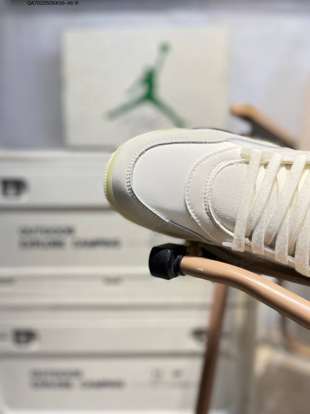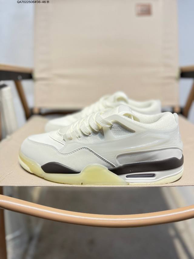 Air Jordan 4 Rm 重置米白棕 Aj4 乔丹4代 Aj4 乔4 米白色 乔丹篮球鞋系列 整鞋采用皮革与帆布材料打造,鞋面使用米白色帆布作为主体,搭配鞋头奶白色皮革框架,保留Air Jordan 4经典造型的同时,取消了原本的网格,搭配白色的鞋带,让整鞋看起来更有整体感。鞋舌顶端锈有蓝色Jumpman Logo以及Flight字样,彰显球鞋身份。鞋帮部分和后跟位置的提环使用米白色Tpu材质,给鞋身带来更多色彩层次感。后跟采用米白色Nike Swooshh Logo呈现,中底延续前作使用了分离式后