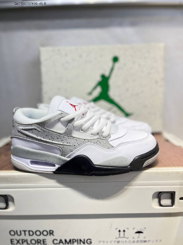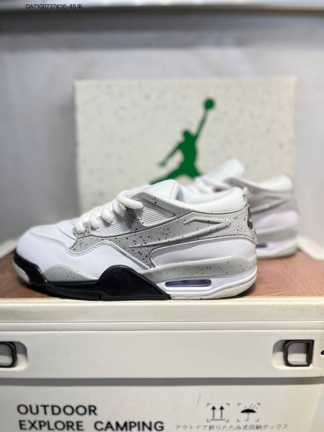 FFF Air Jordan Aj4 Retro Rm 低帮复古篮球鞋 DDD 采用了低帮的设计 并保留了众多Aj4的经典元素 鞋身以皮革、麂皮材质拼接打造 Aj4经典的Tpu材质延伸至后跟 增强鞋款稳定性 而鞋身侧面的网格设计则被取消 尾部的Nike Air标志也得到保留 并同时带有飞人Logo 中底部分同样搭载了可视Air气垫 鞋底采用黑色中底和外底呈现 为整个设计收尾 货号:Io7434 Qa7 737#36-45半 DDD